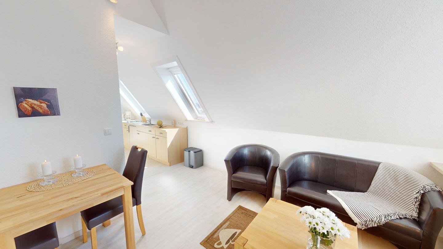 Diese gemütliche 38 m² große Dachgeschosswohnung ist perfekt geeignet für zwei Gäste.