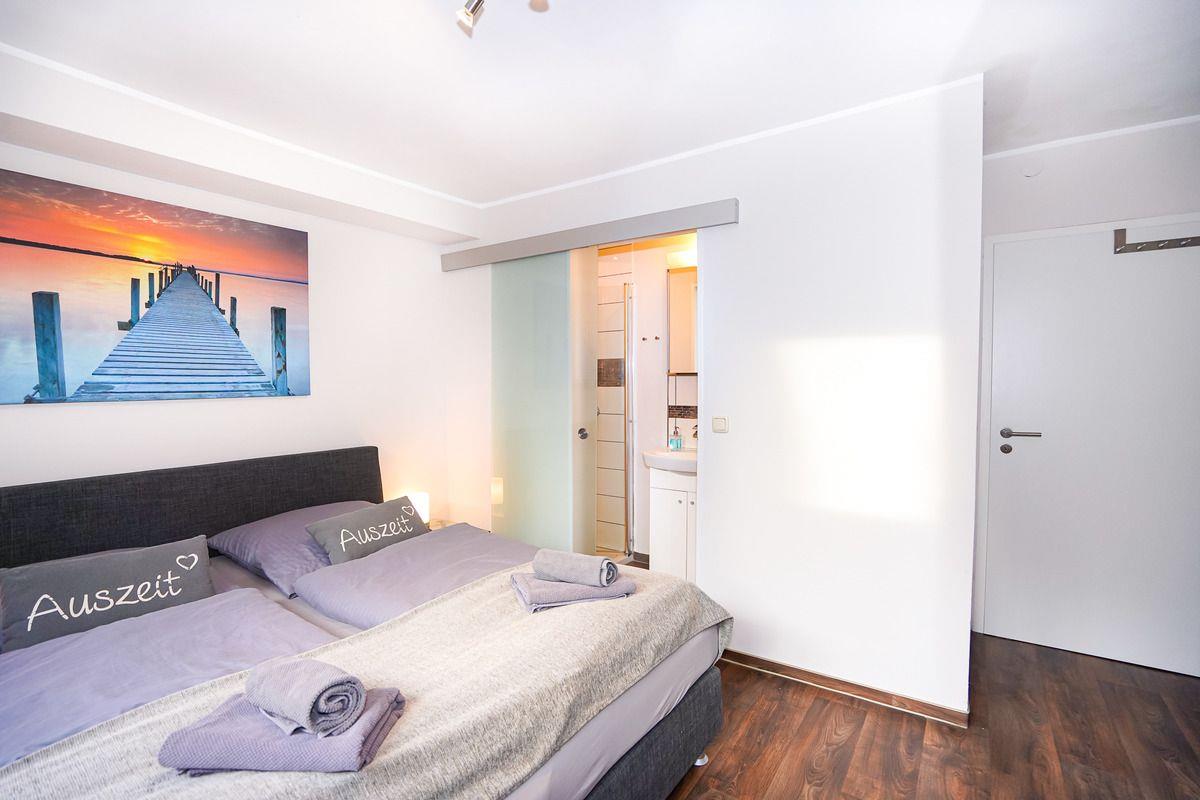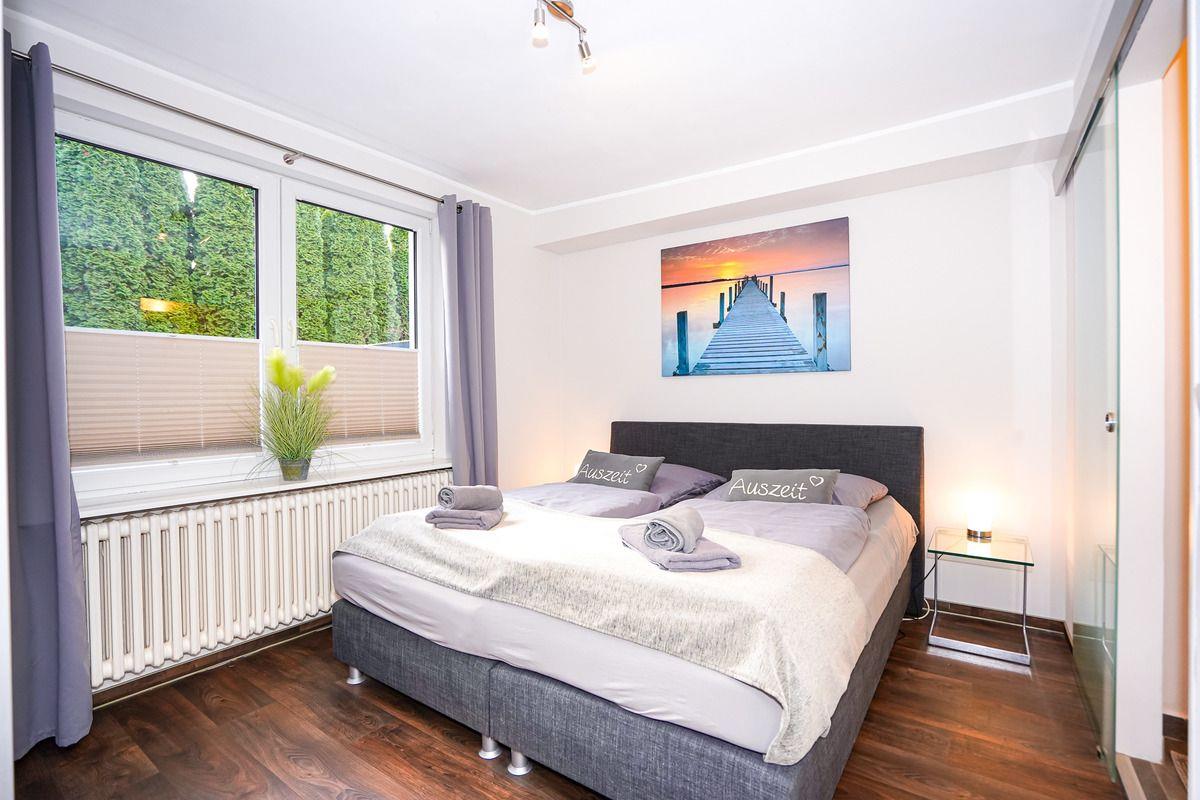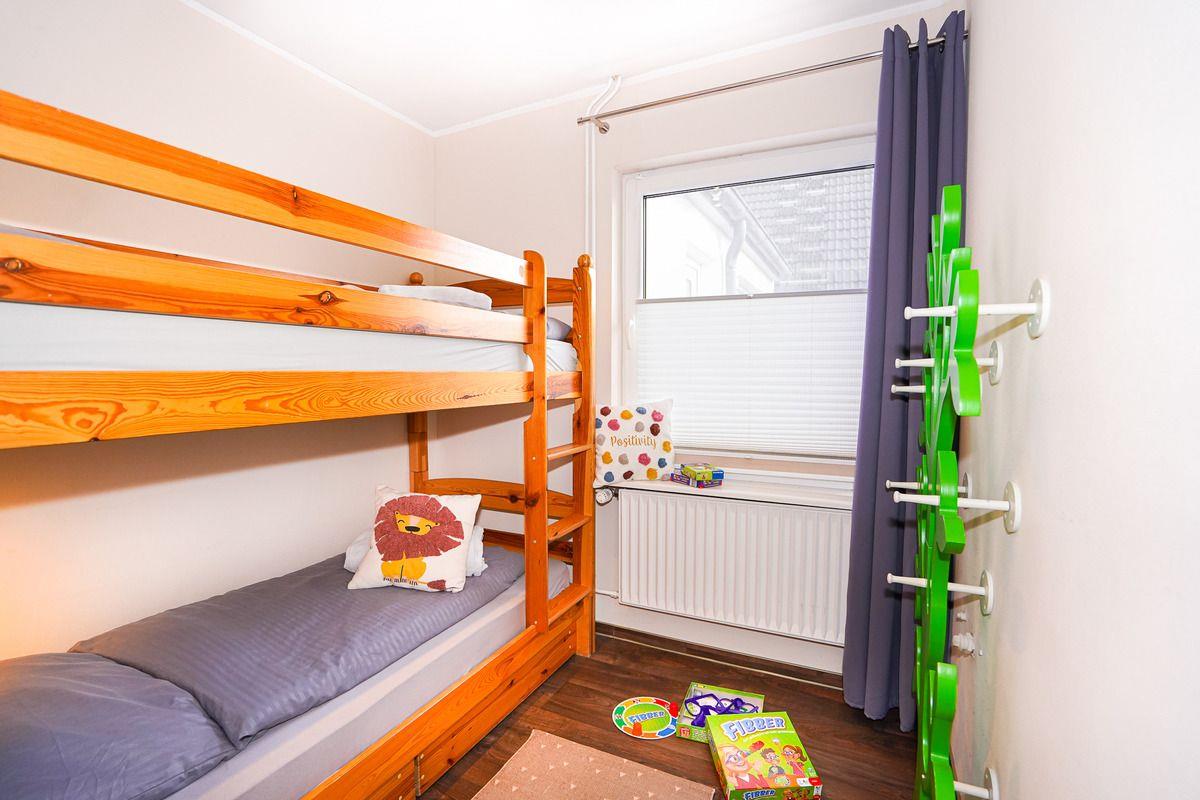 Die Ferienwohnung "Strandmuschel" verfügt über 2 Schlafzimmer, die beide mit bequemen Boxspringbetten ausgestattet sind. Zusätzlich steht ein Kinderzimmer mit einem massiven Etagenbett (90x200), welches auch für Erwachsene geeignet ist, zu Verfügung.