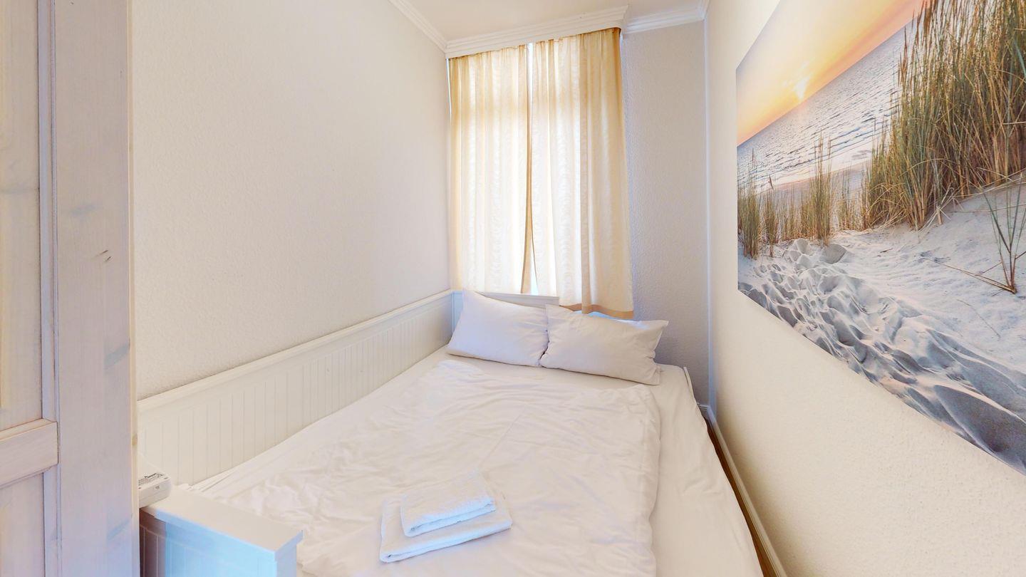 Bitte beachten Sie, dass es keine Außenrollläden gibt, sondern nur Gardinen als Sichtschutz, die nicht komplett abdunkeln.
