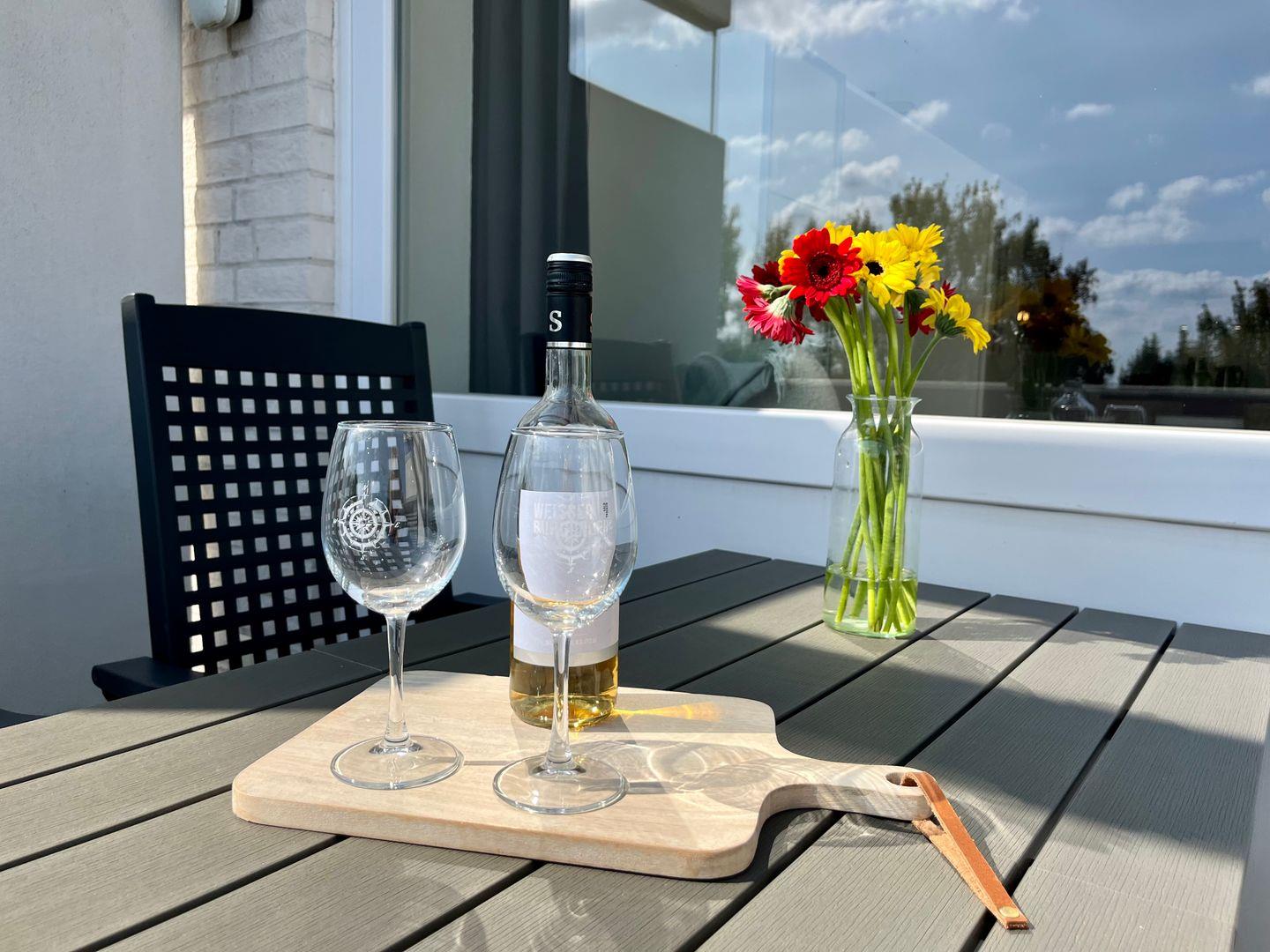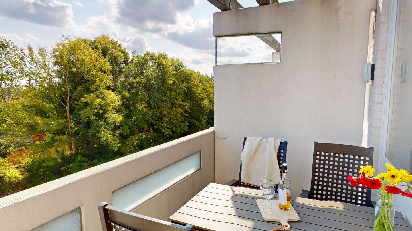 Genießen Sie die Sonne auf dem Balkon. Bequeme Balkonmöbel stehen für Sie bereit.