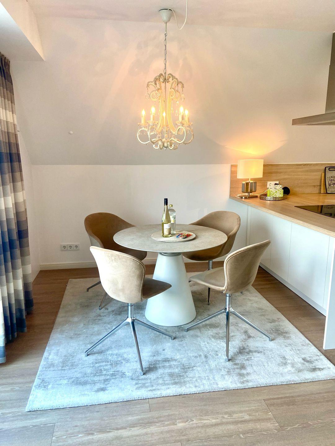 Die traumhafte Ferienwohnung mit einem wunderschönen Ausblick ins Grüne befindet sich im Penthouse eines sehr ansprechenden Neubaus (2014) in ruhiger Lage von Grömitz. Der Strand und die Ostsee sind nur zirka 1000 Meter entfernt und die belebte Grömitzer Promenade mit abwechslungsreicher Gastronomie, Cafés, Strandbars und schönen Geschäften, erreichen Sie in 12-15 Minuten zu Fuß.