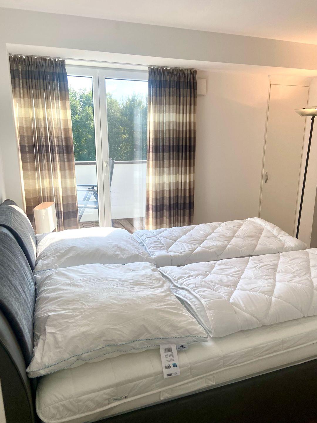 Die äußerst hochwertige Ausstattung und die stilvolle Einrichtung dieser Wohnung bietet zeitgemäßen Luxus auf 92 qm Wohnfläche. 2-4 Personen finden hier ein tolles Urlaubsdomizil. Mittelpunkt der Wohnung bildet der großzügige Wohnbereich, der mit einem Ecksofa und einem Relaxsessel mit Fußhocker ausgestattet ist und einen wunderschönem Blick auf den Golfplatz frei gibt. Der Balkon vom Wohn-/Esszimmerzimmer zeigt zur Westseite. Hier genießen Sie schon mittags die Sonne bis zum Sonnenuntergang am Abend. Der Essbereich mit der offenen, komplett ausgestatteten Komfortküche mit Dampfgarer und Mikrowelle bietet ausreichend Platz. Die Schlafzimmer verfügen über ein Doppelbett (2 x 80x200 cm) und ein Doppelbett (2 x 90x200 cm), einem großen Kleiderschrank mit ausreichend Stauraum für Ihre Urlaubsgarderobe und einem Balkon in Ostausrichtung - ausgestattet mit Gartenmöbeln- um mit der Morgensonne schon den ersten Kaffee dort zu genießen. Der nach Osten ausgerichtete Balkon ist von beiden Schlafzimmern aus begehbar. Sowohl vom West- wie auch vom Ostbalkon haben Sie einen spektakulären Blick in die Natur und auf den Golfplatz. Das Tageslicht-Bad ist hochwertig und modern und verfügt über eine ebenerdige bodentiefe Walk-In-Raindance-Dusche. Das Gäste-WC ist zusätzlich mit einer Waschmaschine und mit einem Trockner versehen. Kostenloser Internetzugang ist über WLAN gegeben. Ein wunderbares Highlight der Golfresidenz ist das große Schwimmbad (8x12 m) im Nachbarhaus, welches die Gäste der Anlage ganzjährig kostenfrei nutzen können. Entspannung ist ebenfalls in der Sauna gegeben (Münzbetrieb). Genießen Sie die Ruhe und Erholung, die Sie hier finden werden. Auf dem Grundstück sind zwei PKW Stellplätze für Sie reserviert. Ein Fahrstuhl ist selbstverständlich vorhanden um barrierefrei in diese tolle Dachgeschosswohnung zu gelangen. Fahrradständer sind vor dem Haus und mit dem Zweirad ist man bequem in 3 Minuten auch am Strand. Ein Bollerwagen steht Ihnen ebenfalls zur Verfügung. Ihren Hund dürfen Sie hier gerne mitbringen.