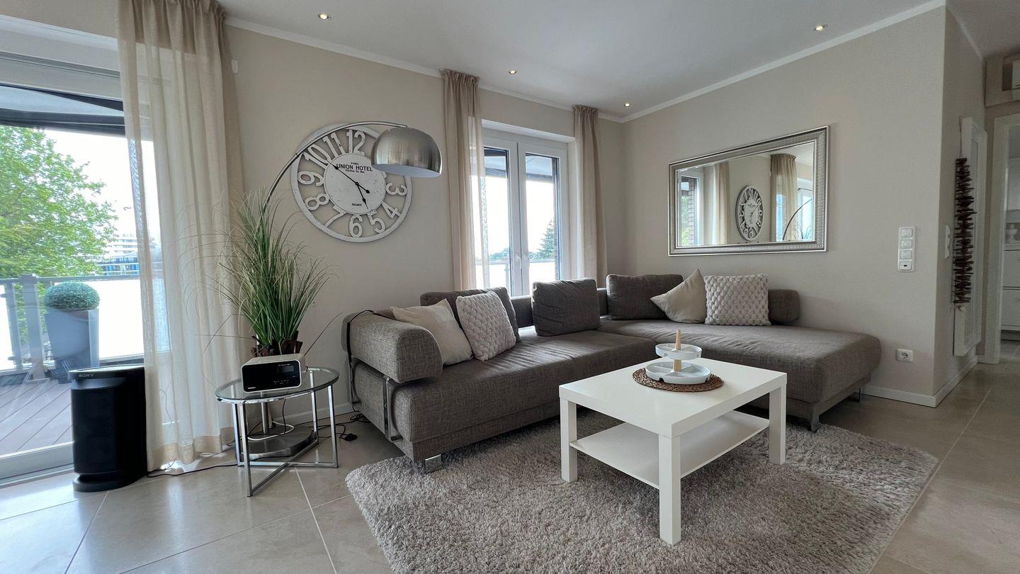 Modernes Penthouse am Kurpark Grömitz mit Sauna, Balkon und Dachterrasse, nur 400 m vom Strand entfernt.