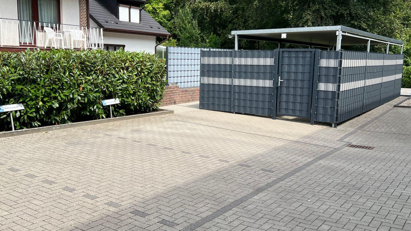 Ihre Fahrräder können Sie gern in den abschließbaren Fahrradschuppen direkt hinter Ihren Parkplätzen abstellen.