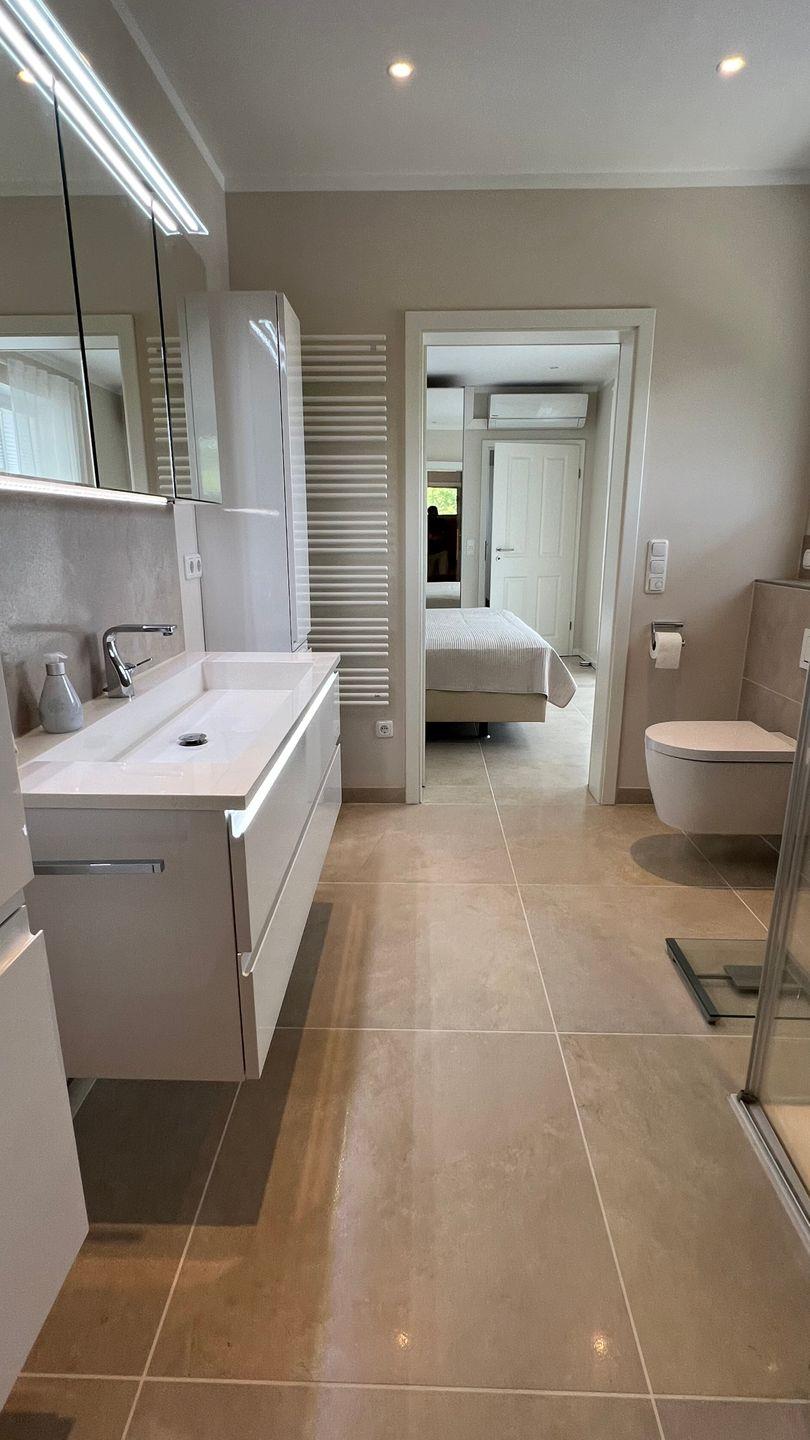 Die sehr komfortabel (Klimaanlagen, Fußbodenheizung, Sauna, elektr. Fenster-Jalousien) und modern eingerichtete Wohnung befindet sich ganz oben im 2. Obergeschoss und ist bequem mit dem Fahrstuhl zu erreichen.