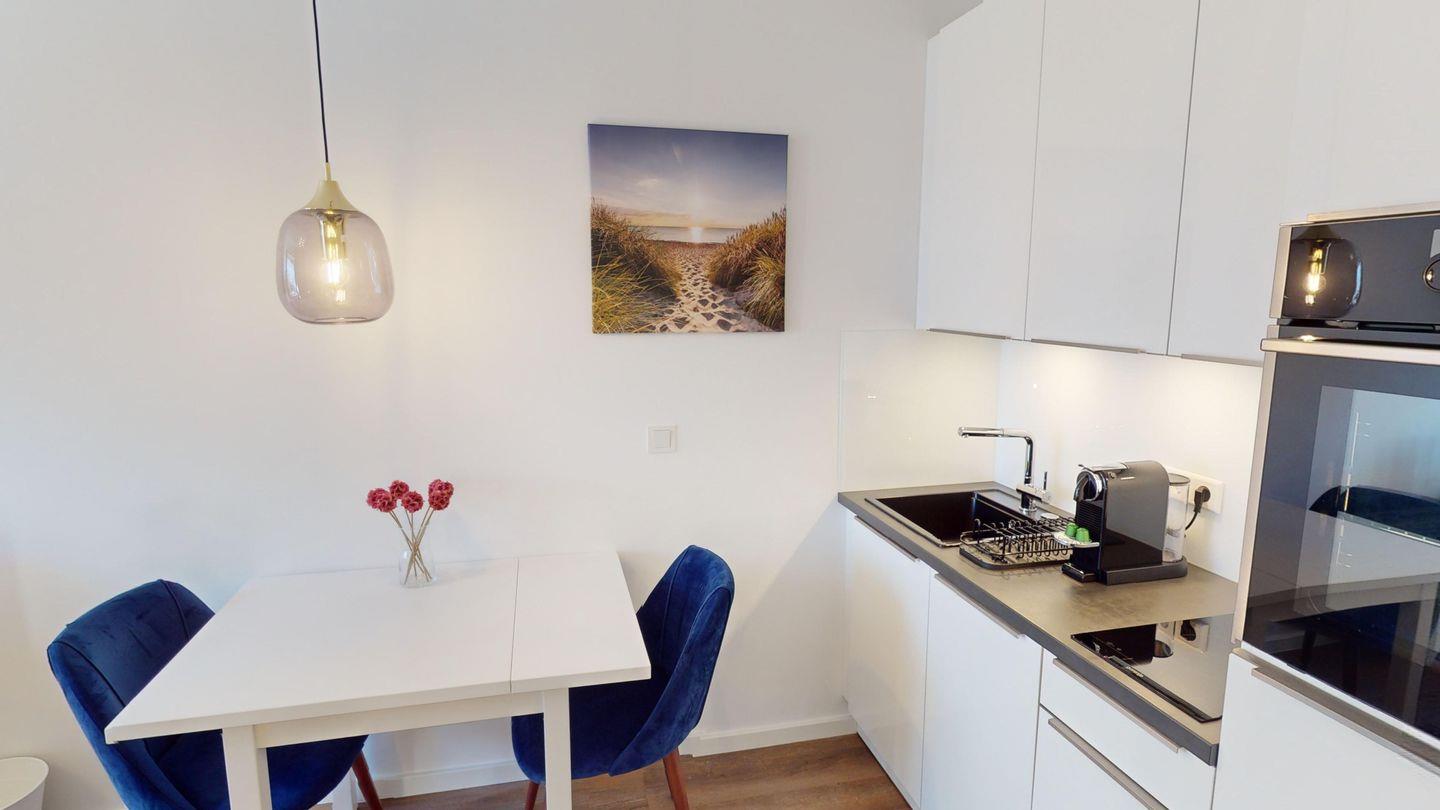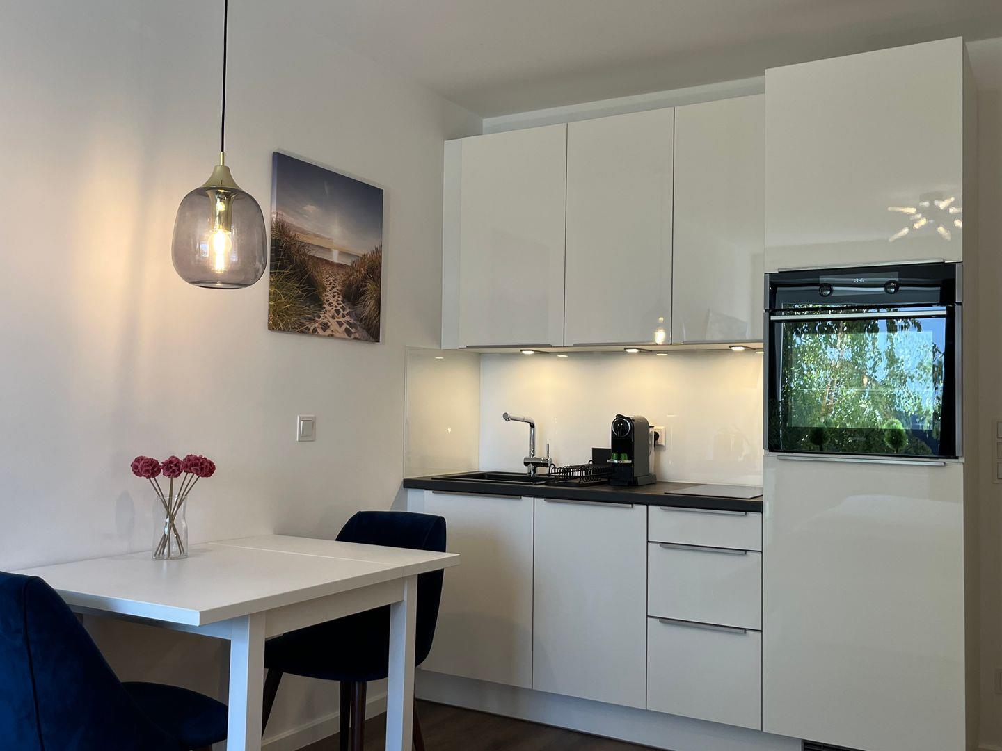 Diese perfekt ausgestattete Wohnung bietet alles, was Sie für einen entspannten Urlaub benötigen. Der offene Wohn- und Schlafbereich schafft eine gemütliche Atmosphäre. Das komfortable Bett (160x200 cm), ein praktisches Sideboard und ein geräumiger Kleiderschrank sorgen dafür, dass Sie sich rundum wohlfühlen. Am Esstisch für 2-3 Personen können Sie ihre Mahlzeiten in entspannter Umgebung genießen. Die moderne Küche ist komplett ausgestattet und bietet alles, was Sie zum Kochen brauchen.