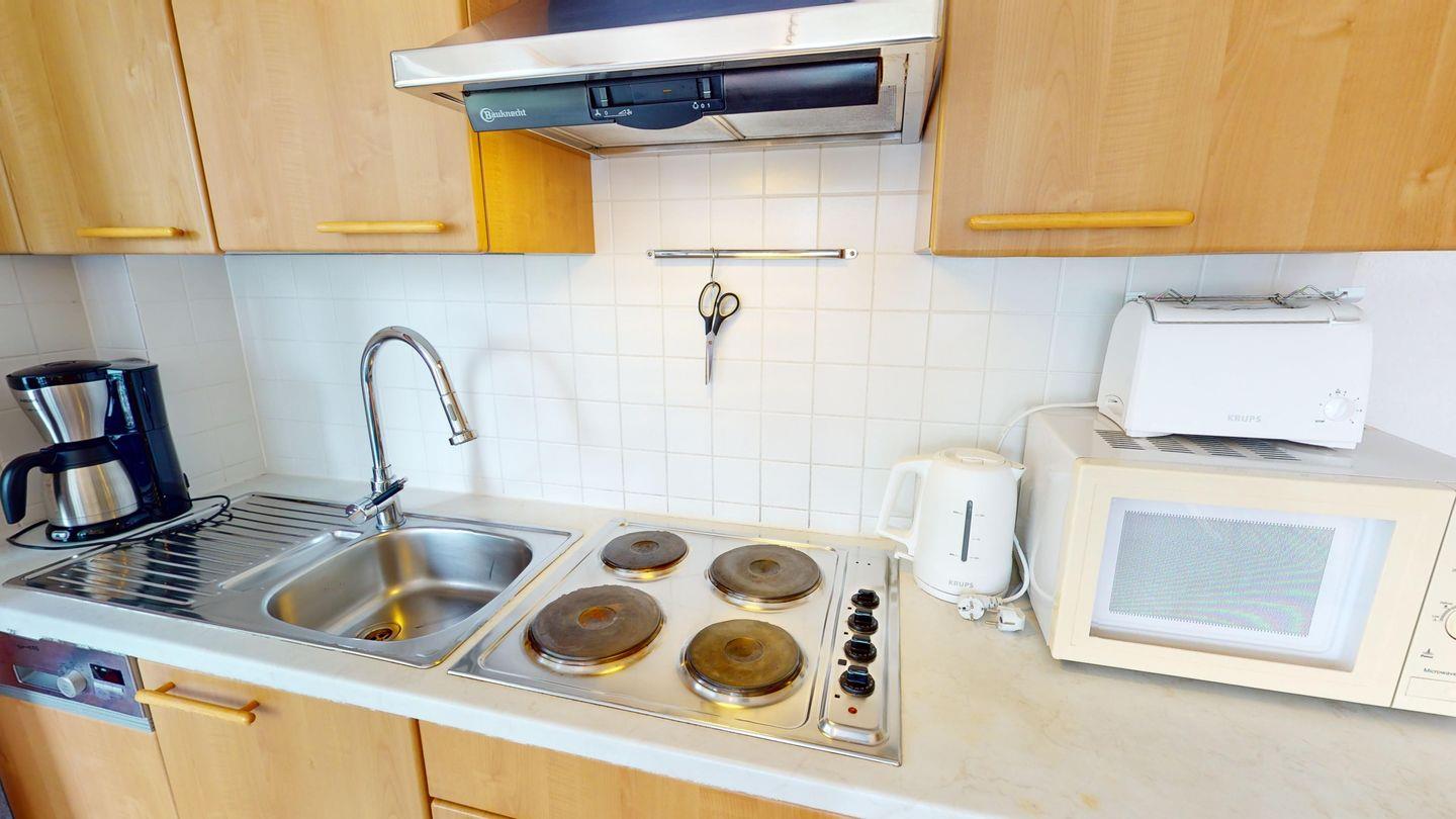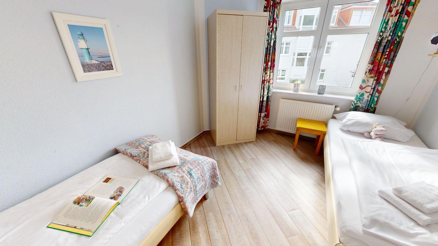 Ein Schlafzimmer verfügt über ein Doppelbett, das andere Schlafzimmer über zwei komfortable Einzelbetten. Ergänzt wird die Wohnung durch ein Duschbad mit WC.