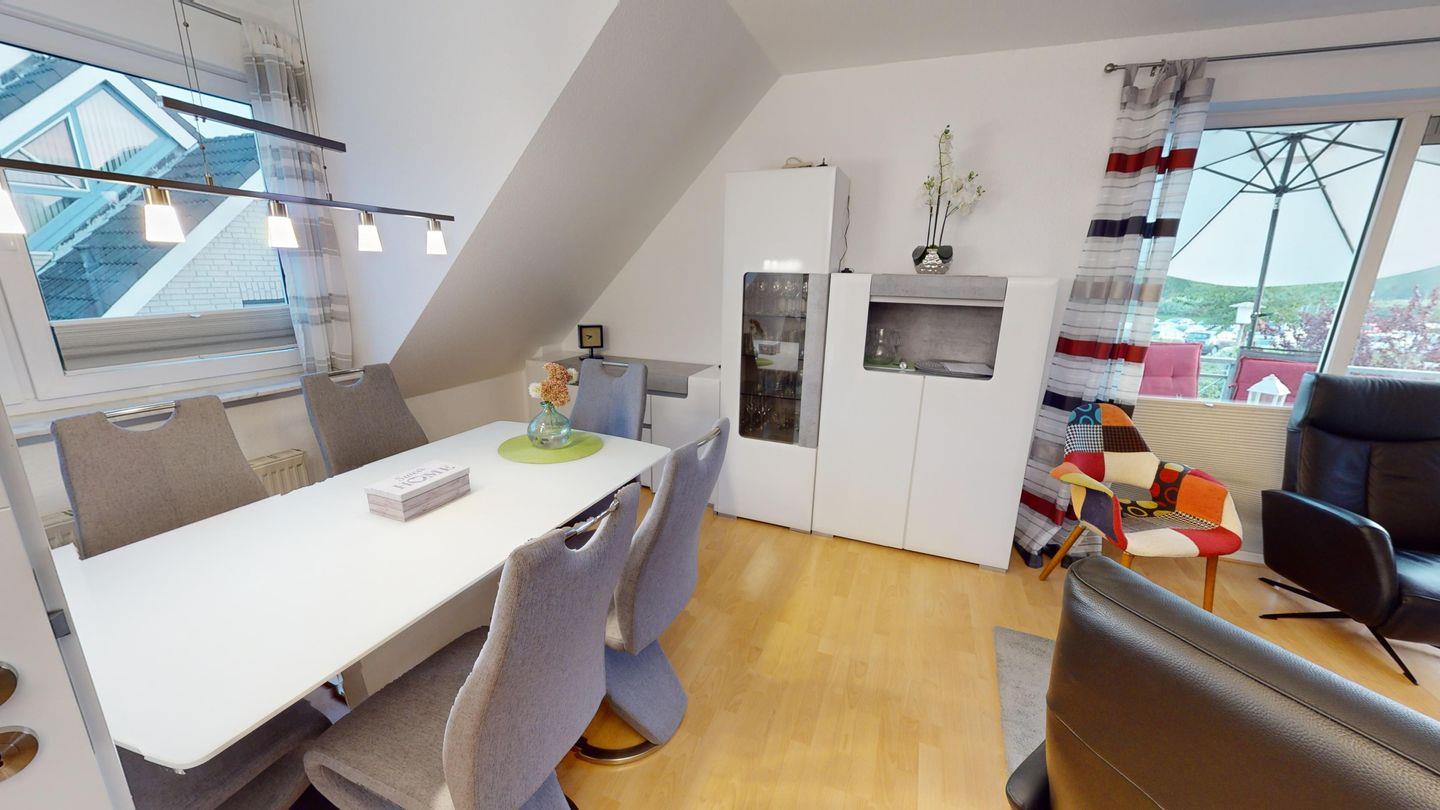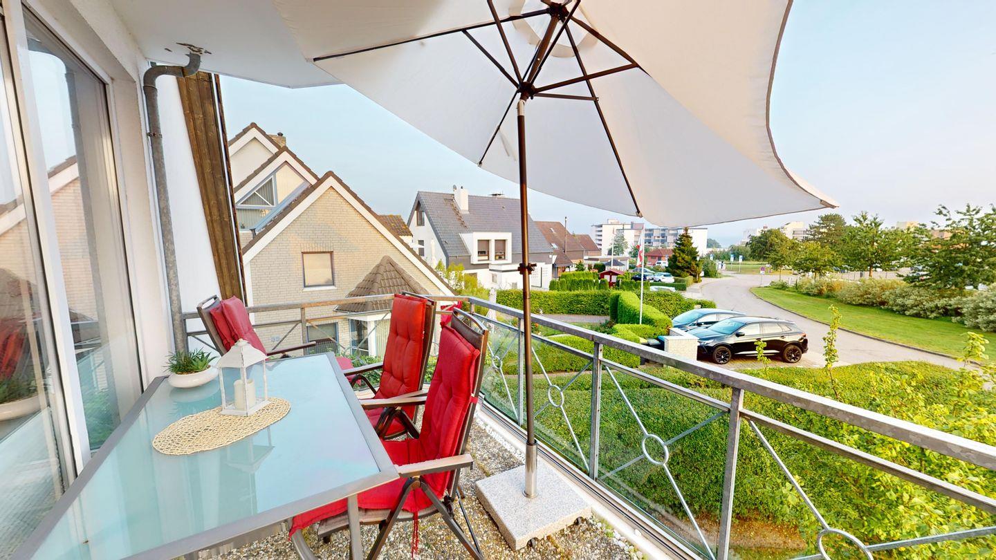 Gemütliches 4-Zimmer Maisonette-Apartment in Grömitz mit Balkon und eingeschränktem Meerblick, ideal für Familien und Gruppen.