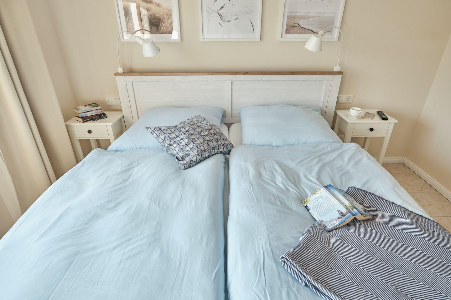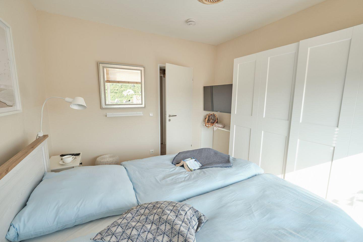 Es erwartet Sie zudem ein separates Schlafzimmer mit einem Doppelbett (2x 90cm x 200cm) zum ausschlafen und entspannen. Hier befindet sich auch ein weiterer Smart-TV.