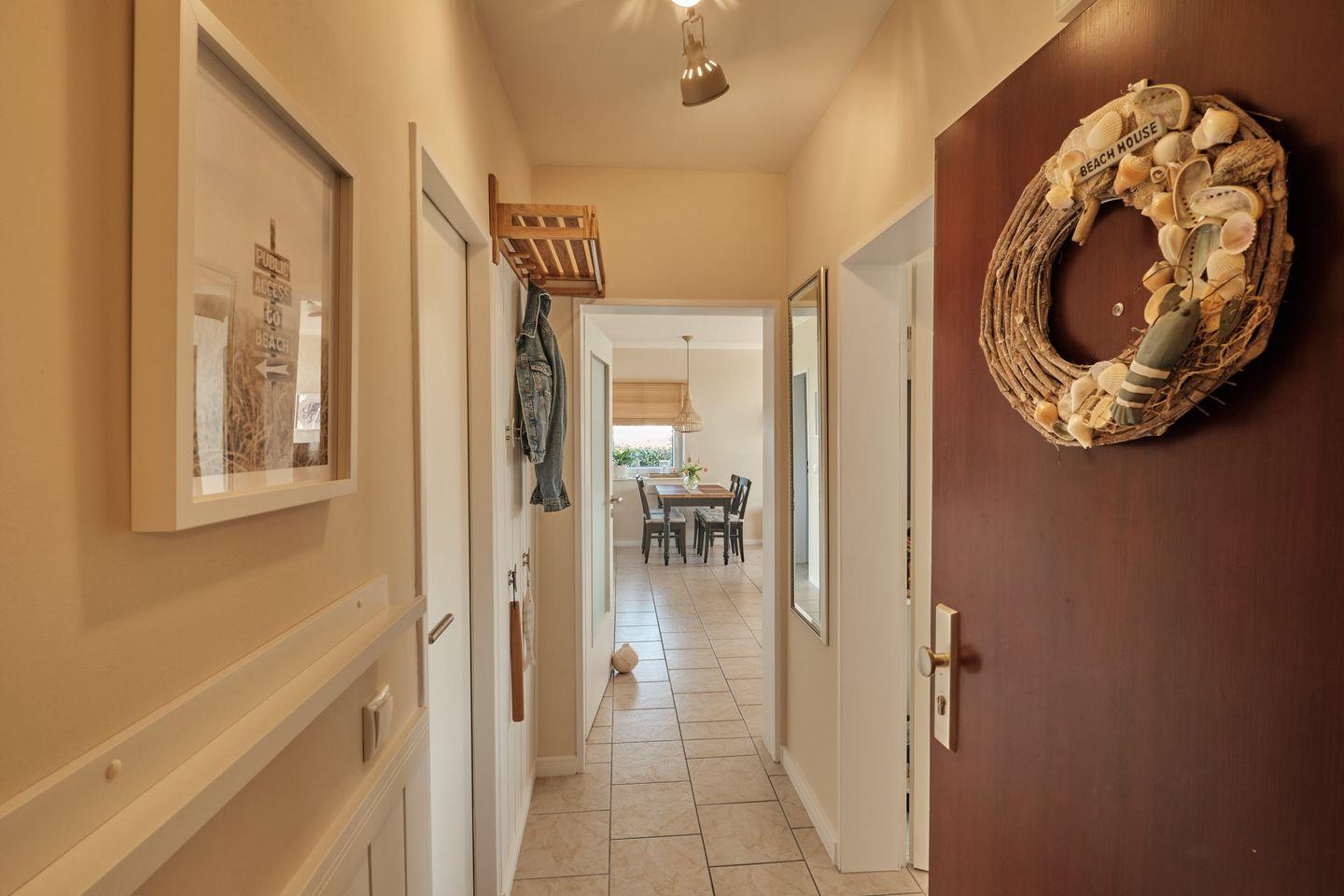 Die Ferienwohnung Haus Baltic, Whg. 54 Beach House in Grömitz bietet auf 54 m² ein Schlafzimmer, ein Badezimmer, eine offene Küche mit moderner Ausstattung und einen Wohnbereich mit Fliesenboden. Ein Balkon mit Gartenmöbeln sowie WLAN, zwei Fernseher und ein Privatparkplatz sorgen für Komfort. Die Unterkunft liegt in erster Reihe direkt am Strand.