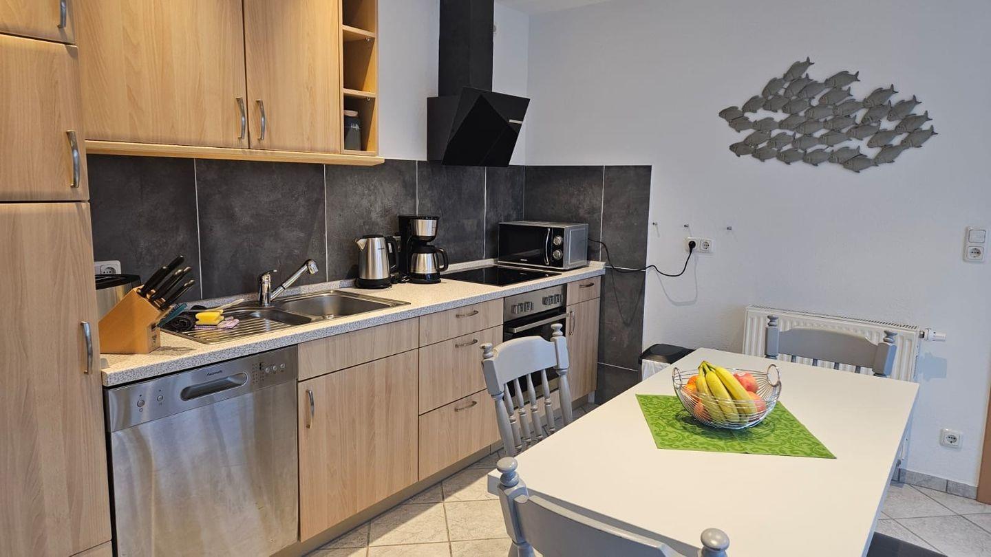 Die voll ausgestattete Küche lädt dazu ein, gemeinsam kulinarische Köstlichkeiten zu zaubern. Genießen Sie Ihre Mahlzeiten im dazugehörigen Essbereich oder auf der überdachten Terrasse, die zu erholsamen Stunden im Freien einlädt.