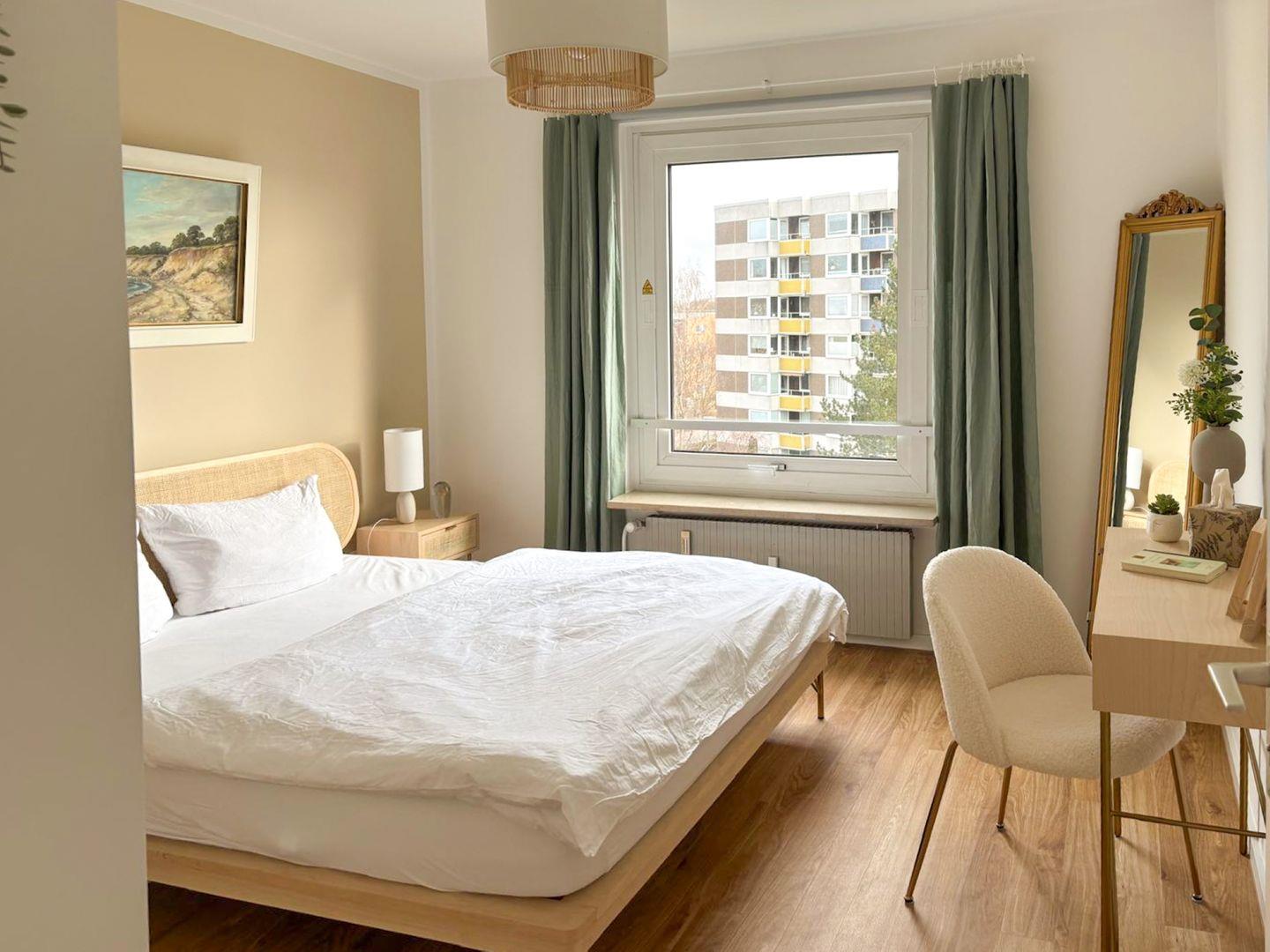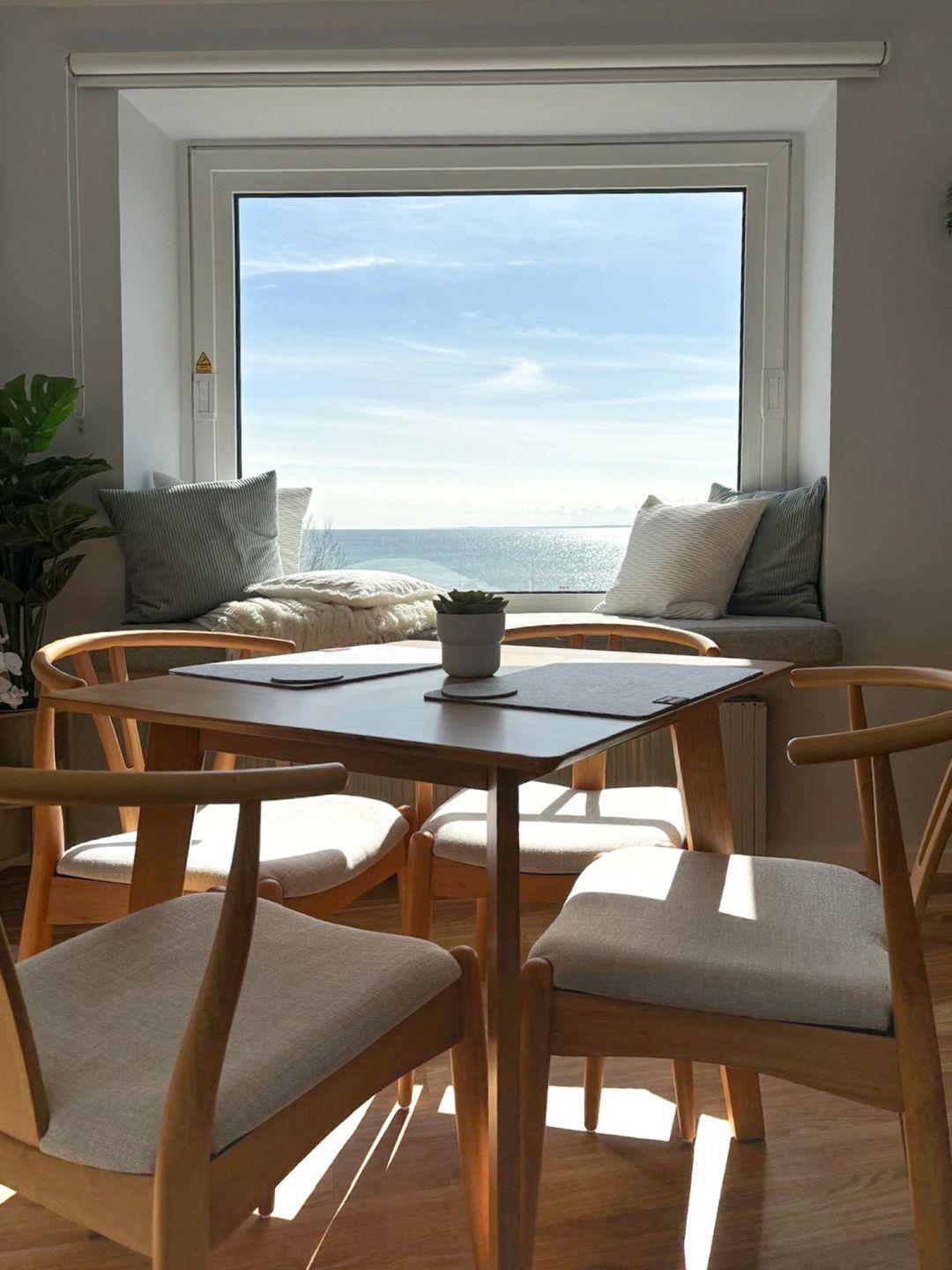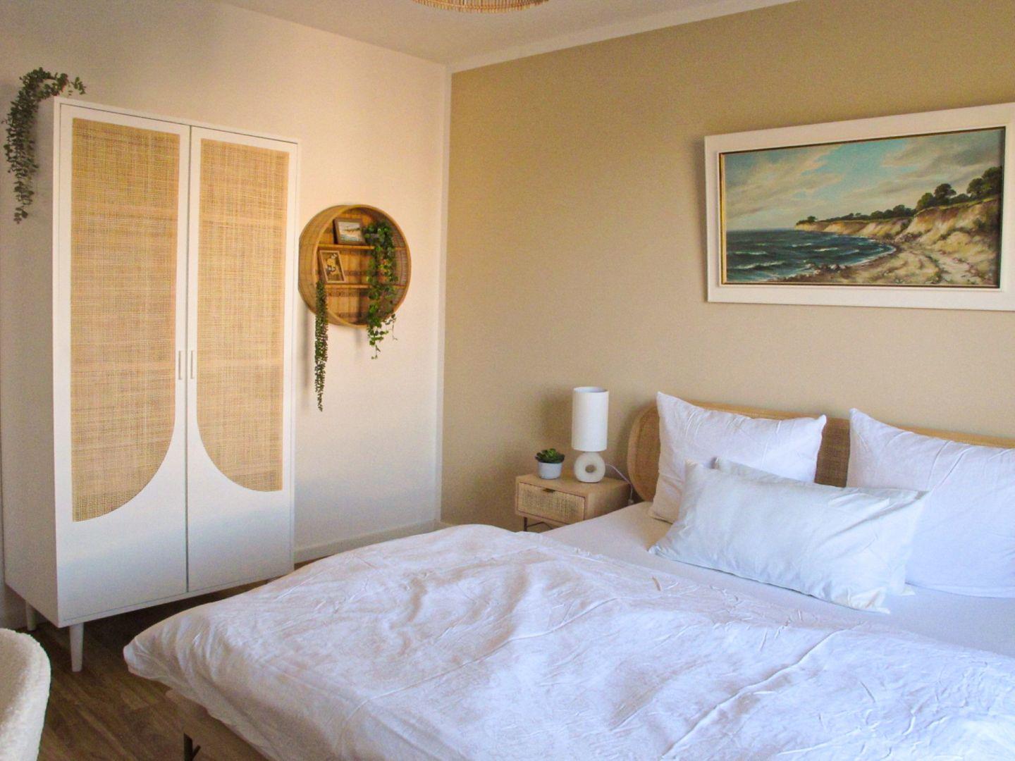 Die Wohnung ist im angesagten Scandi-Minimalismus gestaltet: helle Farben, natürliche Materialien und eine gemütliche Atmosphäre. Das Highlight? Die große Fensterfront mit einer liebevoll eingerichteten Leseecke auf der Fensterbank – perfekt, um mit einer Tasse Kaffee und Meerblick in dein Lieblingsbuch abzutauchen.
