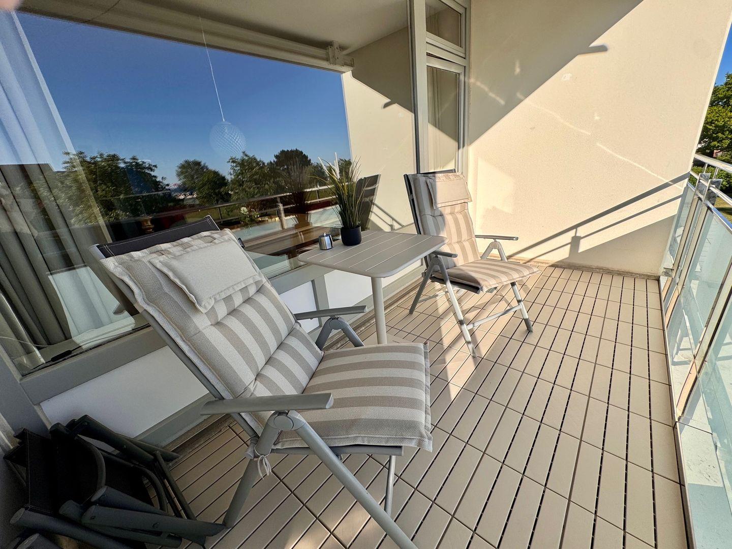 Moderne Ferienwohnung in Grömitz mit Meerblick, WLAN und kostenlosem Strandkorb nur 90 m vom Sandstrand entfernt.