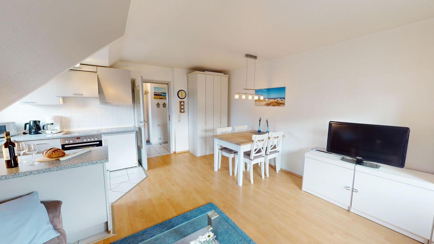 Das strandnahe, 40m² große 2-Zimmer Apartment befindet sich im 1. OG der Deich-Residenz. Es ist für eine Belegung mit 2 Erwachsenen und max. zwei Kindern bis 12 Jahre ausgelegt. Privates Parken auf dem wohnungseigenen Stellplatz.