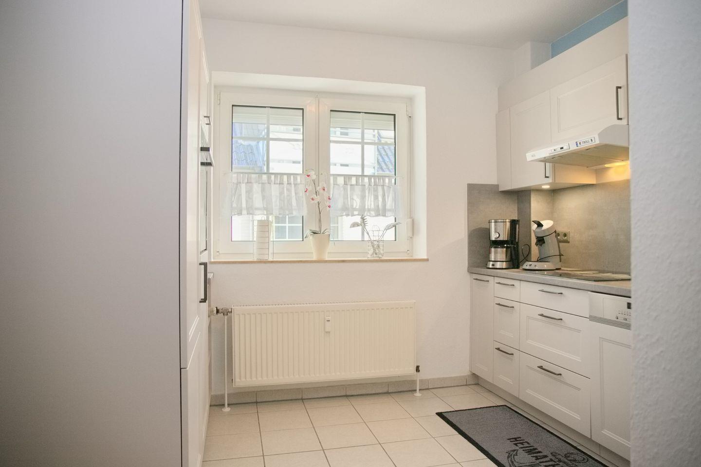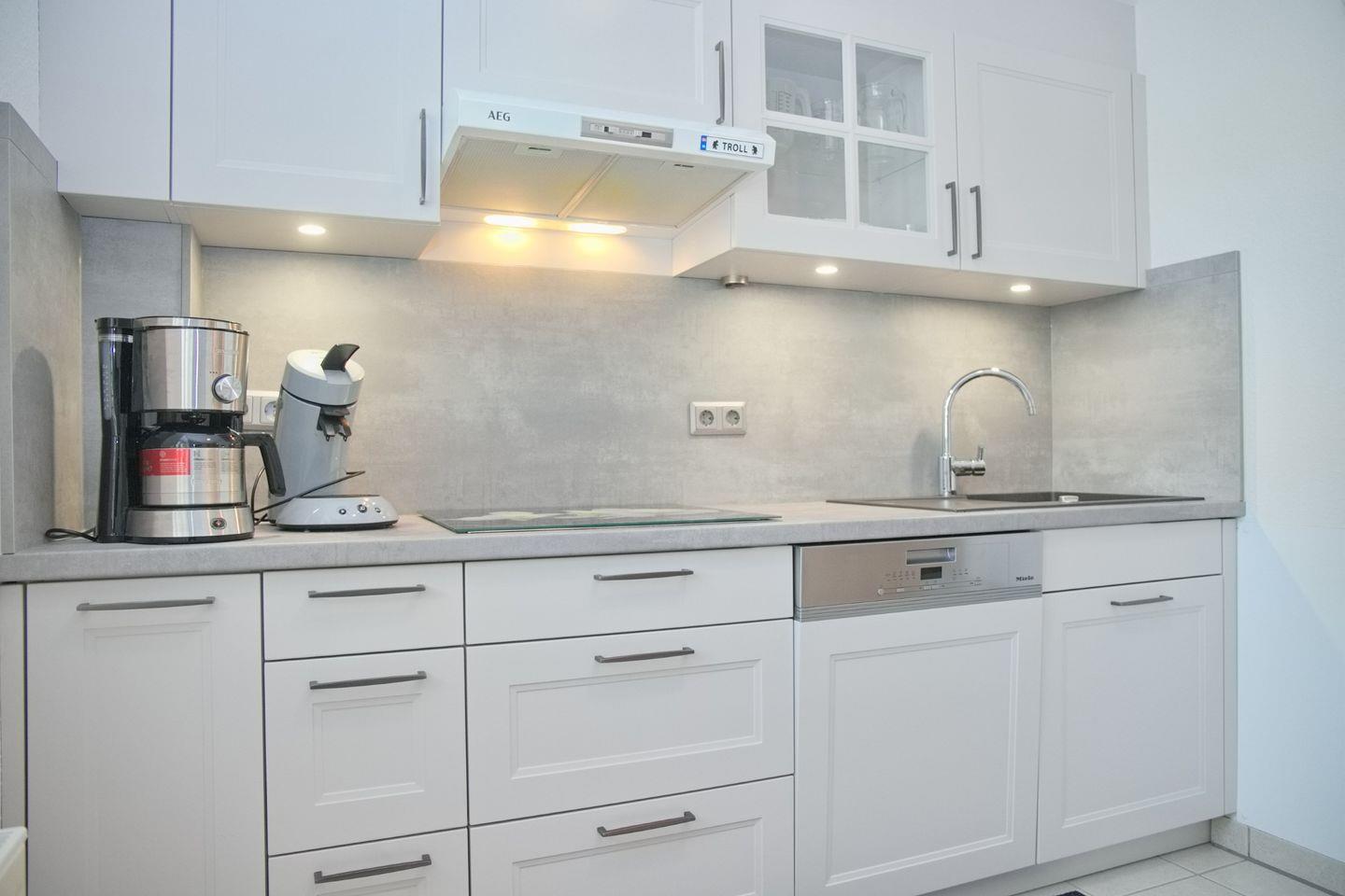 Der Essbereich lädt zum gemeinsamen Speisen ein. Das kulinarische Erlebnis wird in der voll ausgestatteten Küche möglich: Neben einem Induktionsherd, Backofen in Komforthöhe, Mikrowelle, Spülmaschine, Kühlschrank mit Gefrierfach und den gängigen Küchenutensilien stehen Ihnen auch eine Kaffeemaschine, eine Senseo-Maschine, Wasserkocher, Toaster und ein Abfalleimer zur Verfügung – perfekte Voraussetzungen, um auch im Urlaub leckere Gerichte zuzubereiten.