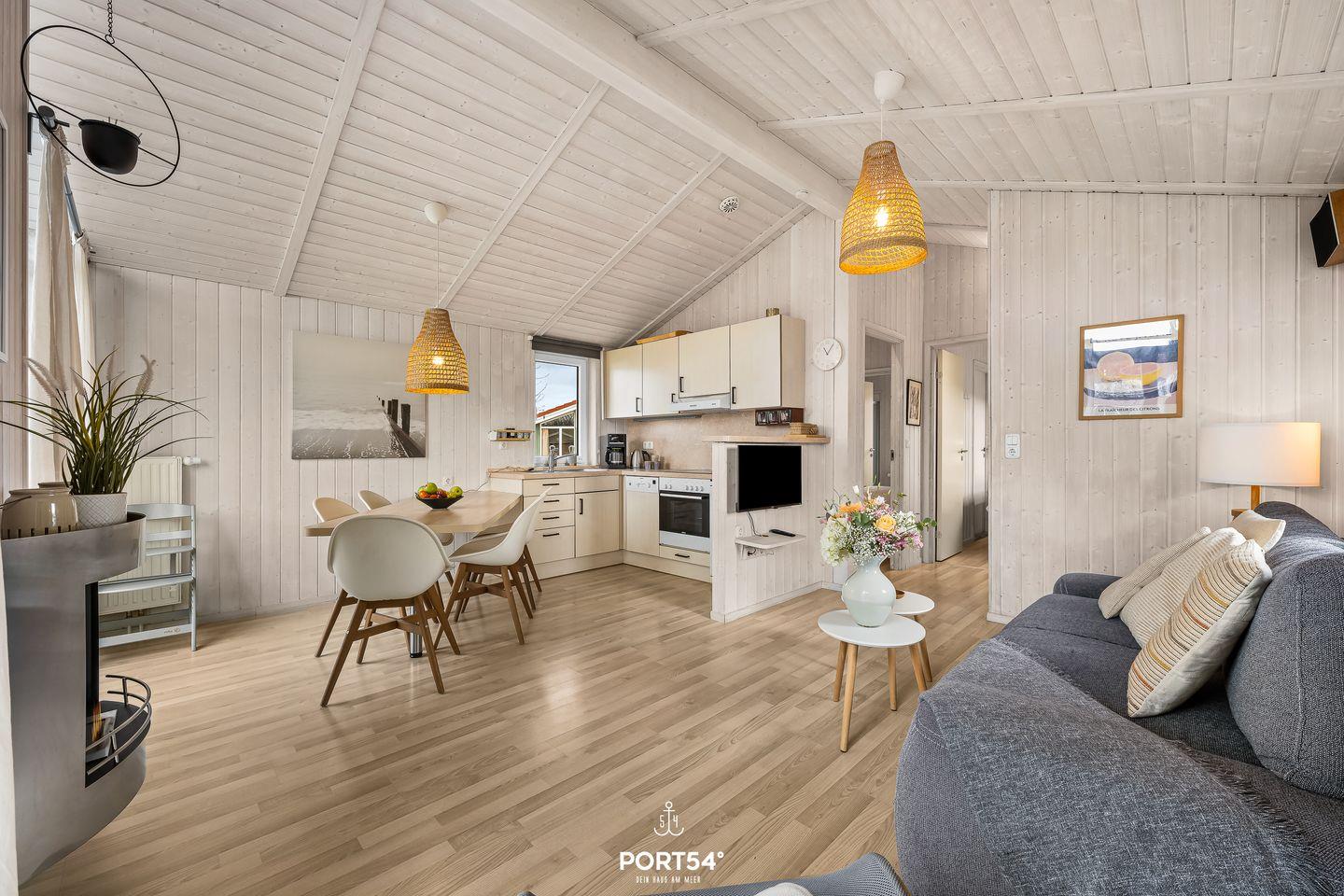 Das komfortable Ferienhaus Lykkehus in Grömitz liegt nur 250 m vom Ostseestrand entfernt und bietet modernes Wohnen auf 52 m².