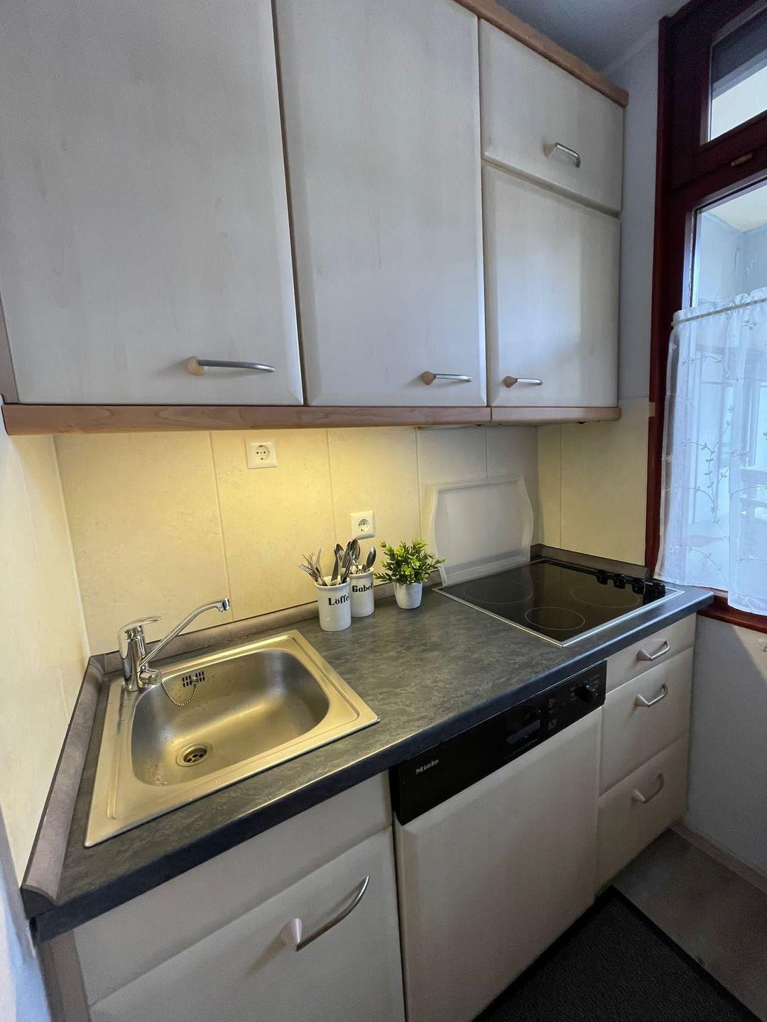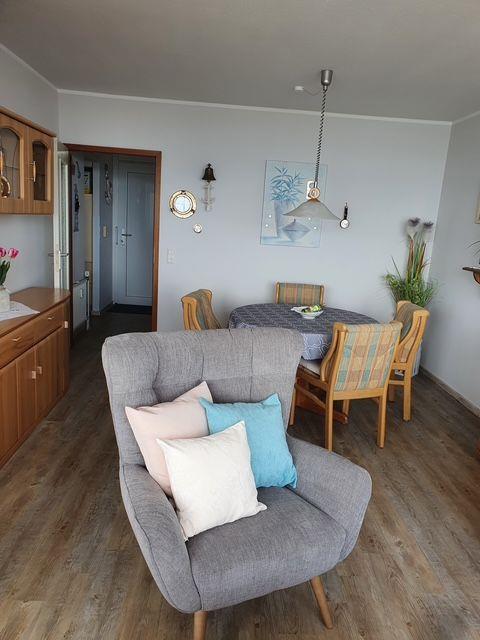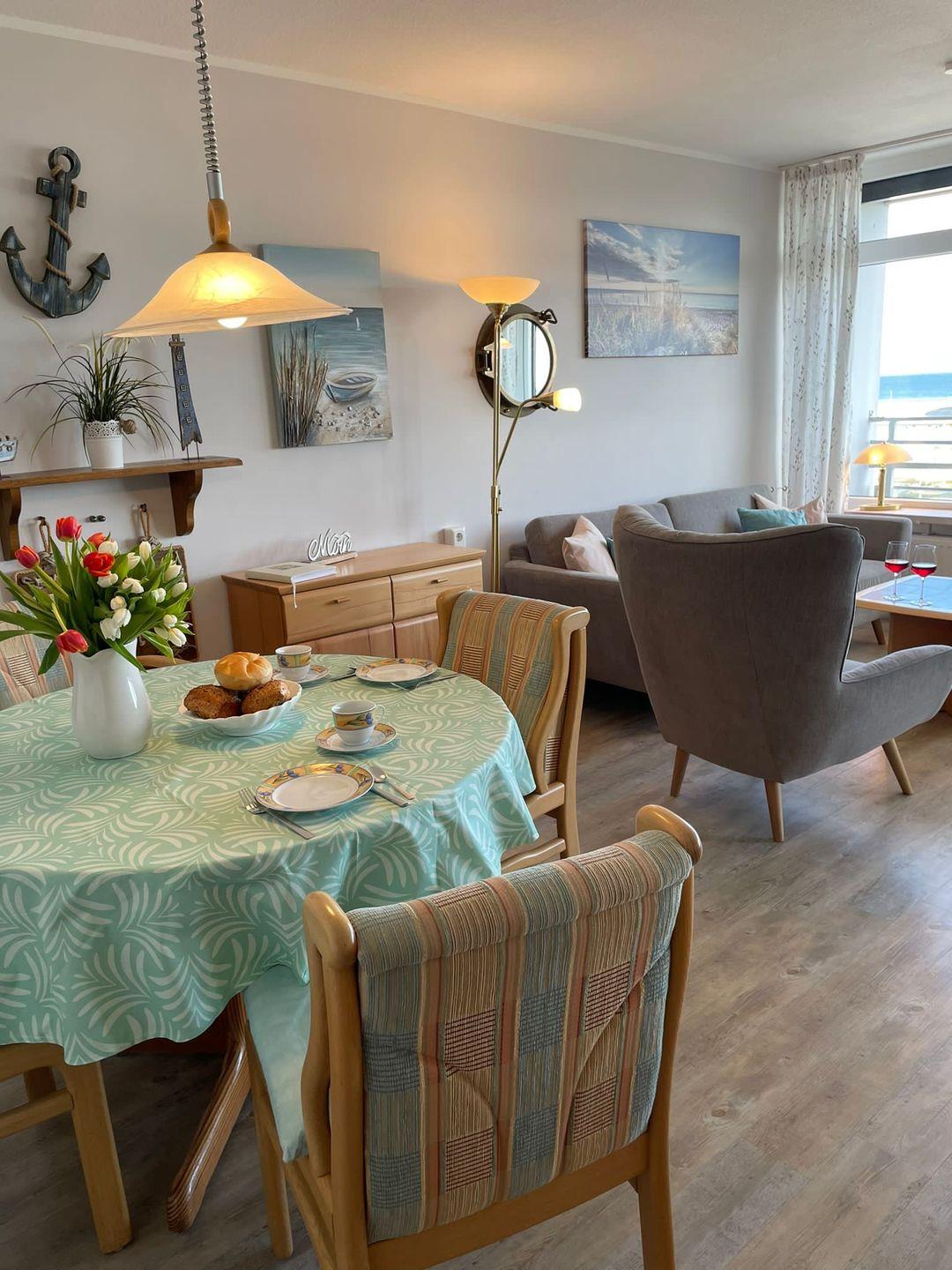 Die Ausstattung der Ferienwohnung entspricht modernen Anforderungen: WLAN inklusive, ein Flachbild-TV im Wohnbereich sowie ein weiterer Fernseher bieten Unterhaltung. Sie finden in der Wohnung eine separate Küche mit vollständiger Küchenzeile, ausgestattet mit Ceranherd, Kühlschrank mit Gefrierfach, Geschirrspülmaschine, Kaffeemaschine, Senseo-Espressomaschine, Wasserkocher, Toaster und verschiedenen Küchenutensilien vor. Der einladende Essbereich mit Esstisch lädt zu gemeinsamen Mahlzeiten ein.