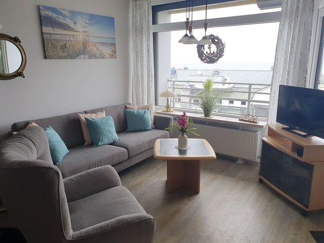 Die Ferienwohnung Grömitz-Center I App. 546 inkl. WLAN bietet Ihnen auf 52 m² ein komfortables und familienfreundliches Urlaubsdomizil in direkter Strandlage im Ostseebad Grömitz. Sie wohnen in der fünften Etage eines Hauses mit Aufzug und genießen einen herrlichen Meerblick vom überdachten Balkon aus. Die Wohnfläche gliedert sich in drei Zimmer: zwei Schlafzimmer und ein gemütliches Wohnzimmer mit Sofaecke und Sitzbereich. Insgesamt stehen Schlafmöglichkeiten für bis zu vier Personen zur Verfügung. Die Unterkunft ist komplett als Nichtraucherobjekt ausgewiesen, auf dem Balkon darf geraucht werden.