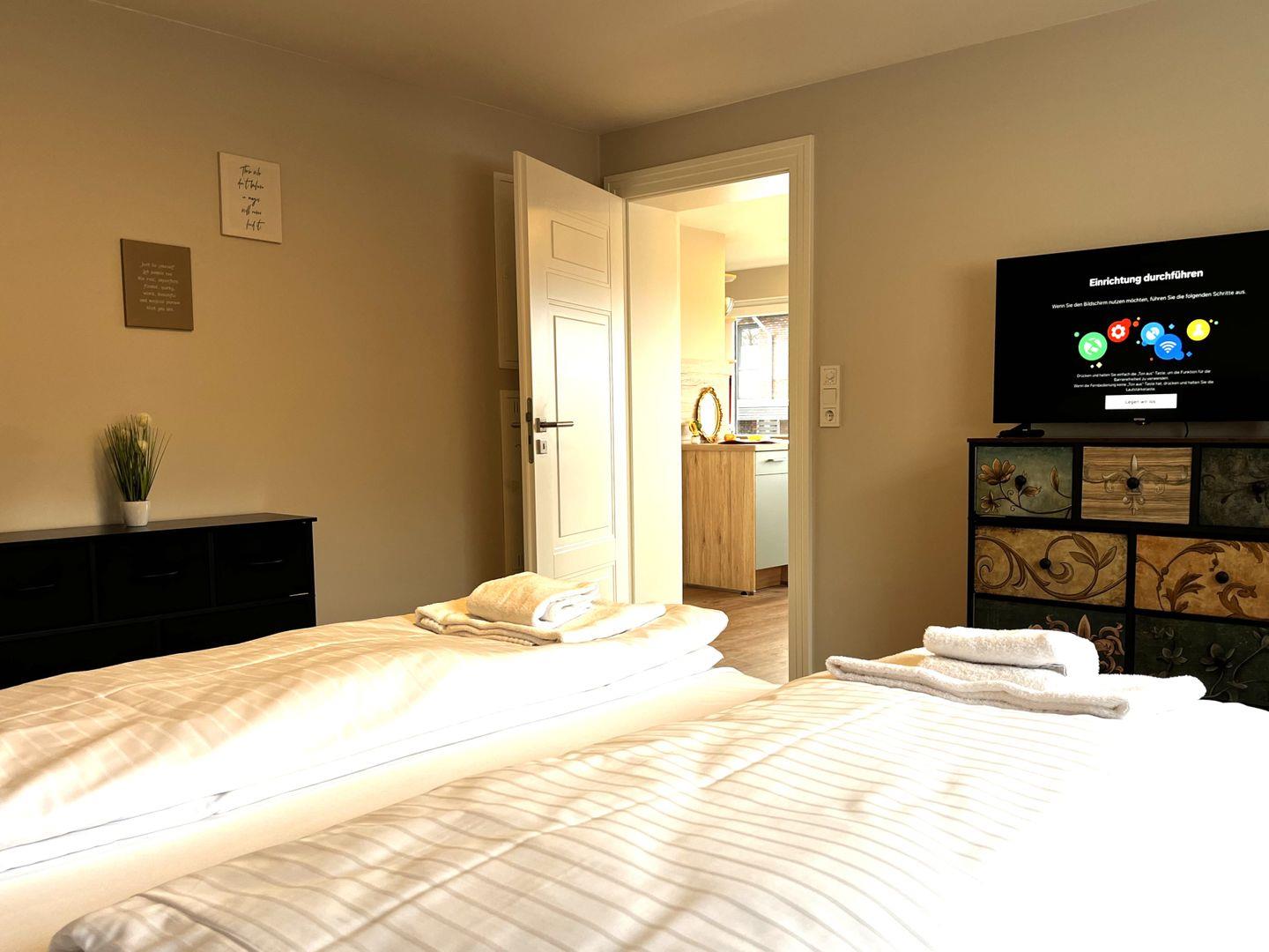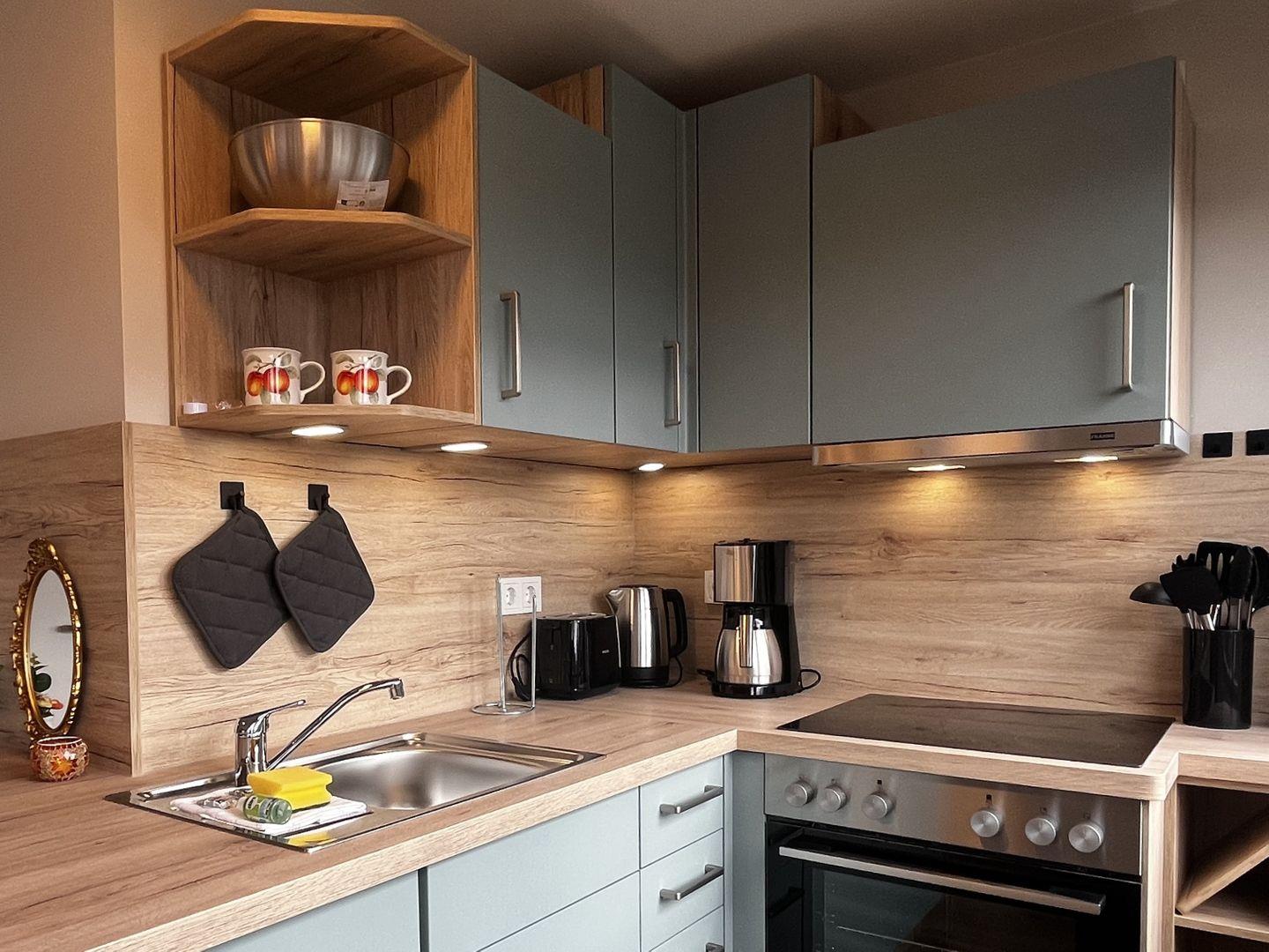 Das Appartement besticht durch seine moderne und einladende Einrichtung. Das Wohnzimmer bietet ein komfortables Sofa zum Entspannen und einen Fernseher für gemütliche Abende. Die angeschlossene Küche ist mit allem ausgestattet, was Sie für einen angenehmen Aufenthalt benötigen: Herd, Backofen, Kühlschrank mit Gefrierfach, Wasserkocher, Kaffeemaschine, Toaster sowie umfangreiche Küchenutensilien, Geschirr und Besteck. Am Esstisch haben Sie ausreichend Platz für gemeinsame Mahlzeiten. Für den grundlegenden Komfort stehen Ihnen Bettwäsche, Handtücher und Geschirrhandtücher zur Verfügung.