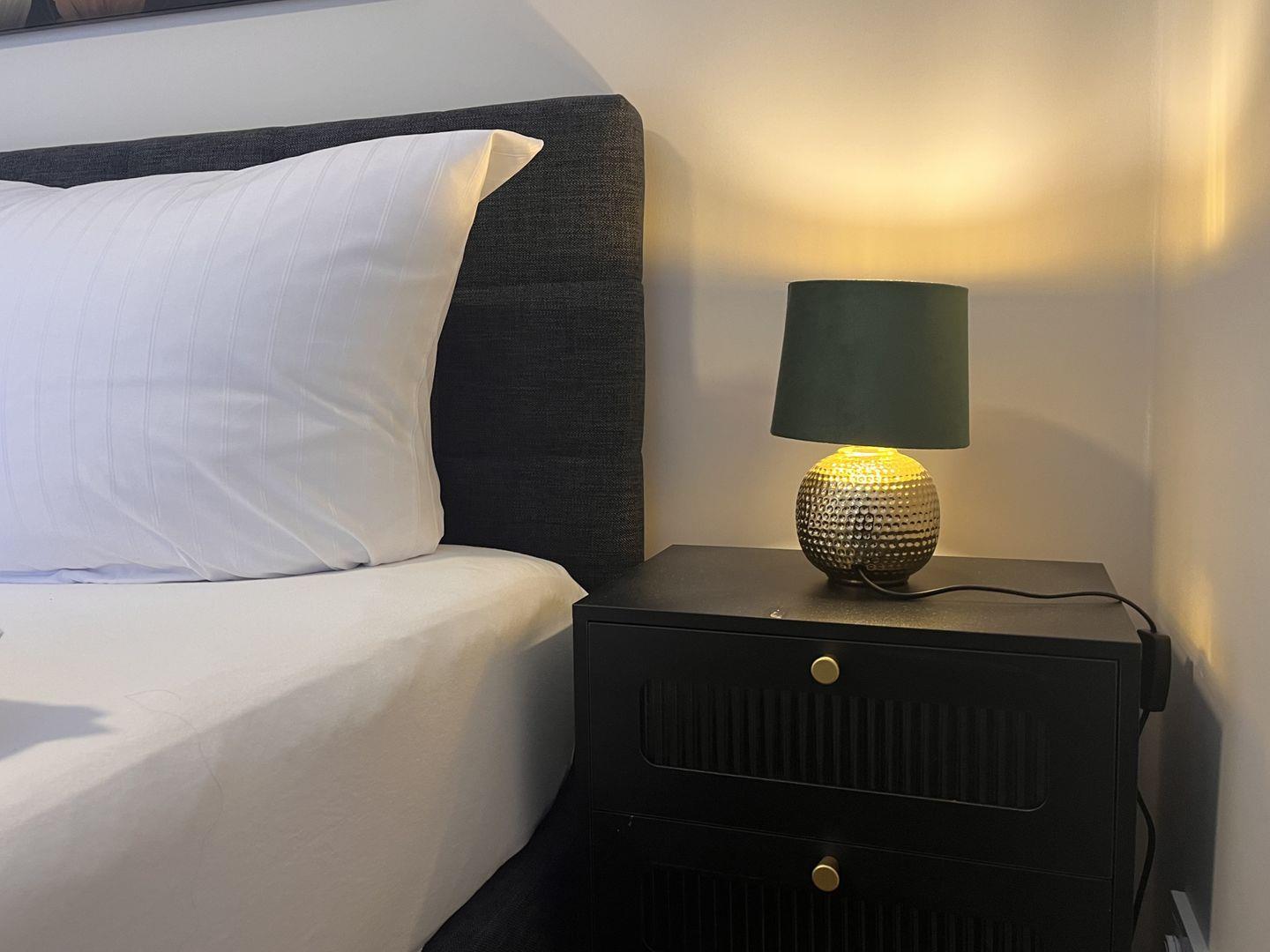 Für einen hohen Wohnkomfort sorgen zudem ein Badezimmer, Waschbecken, WC, Haartrockner und Spiegel sowie frische Bettwäsche und Handtücher. Weiterhin stehen Ihnen eine Kommode, ein Abfalleimer, Geschirrhandtücher und eine Garderobe zur Verfügung.