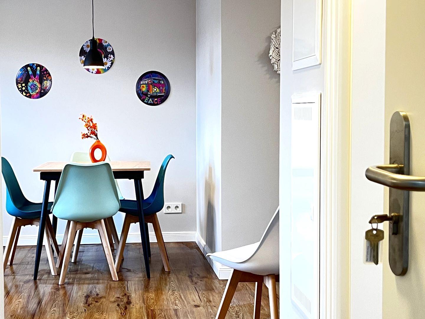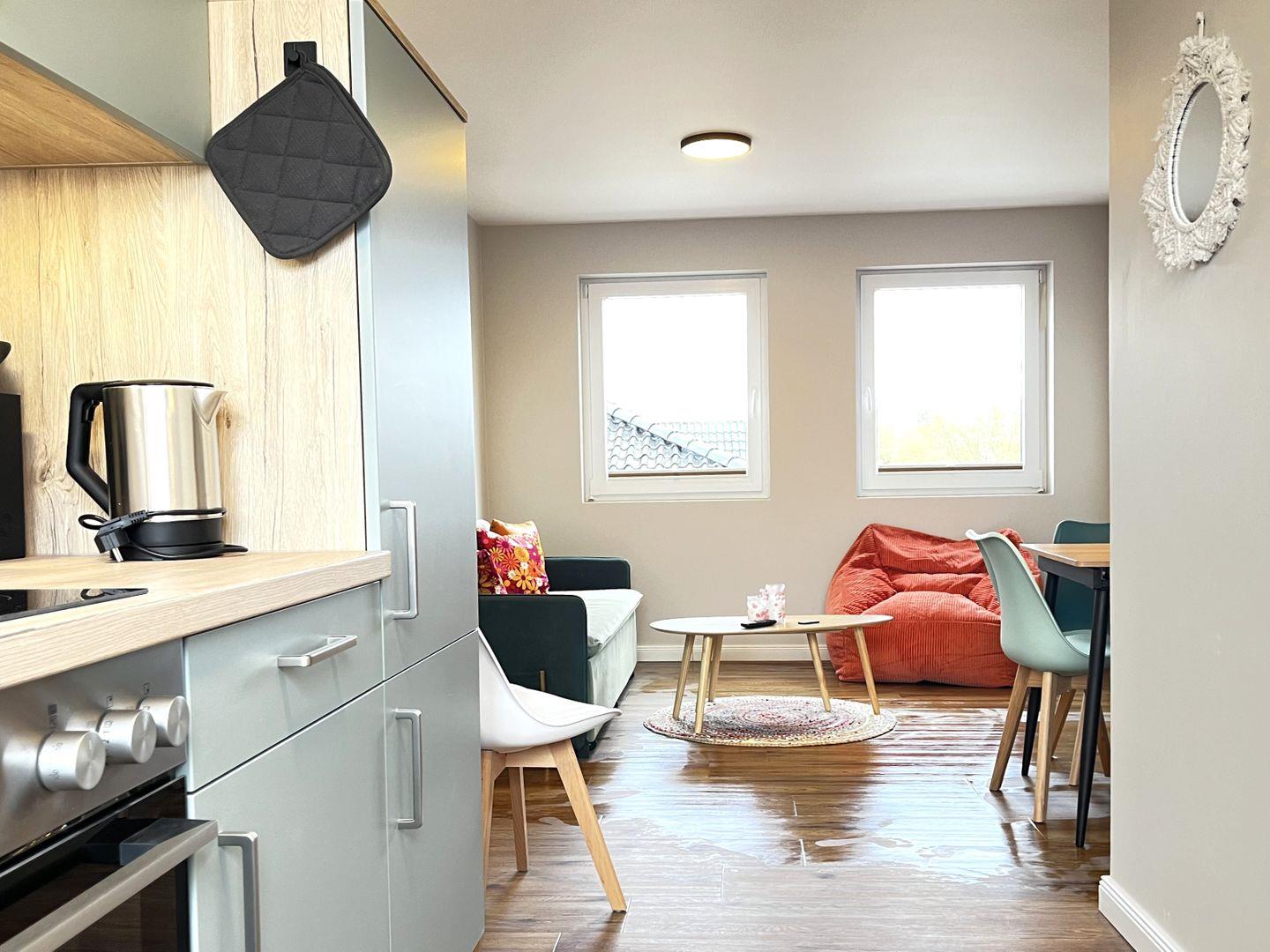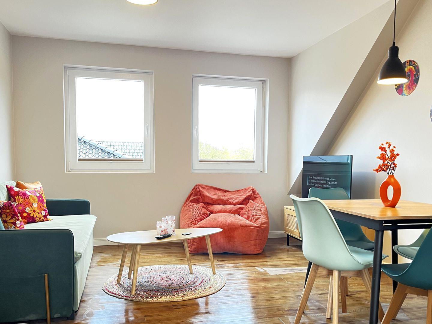 Die Wohnung verfügt über insgesamt 3 Zimmer, darunter 2 Schlafzimmer, 1 Badezimmer sowie einen Wohnbereich mit offener Küche zum Wohnzimmer. Der Wohnraum ist mit Sofa, Sessel, Sofaecke und Essbereich angenehm gestaltet und bietet Ihnen Raum zum gemeinsamen Verweilen. Drei TVs sowie WLAN und Internet sorgen auch im Innenbereich für zeitgemäßen Komfort. Ein Balkon ergänzt die Ausstattung und schafft eine zusätzliche Möglichkeit, frische Luft und entspannte Momente zu genießen.