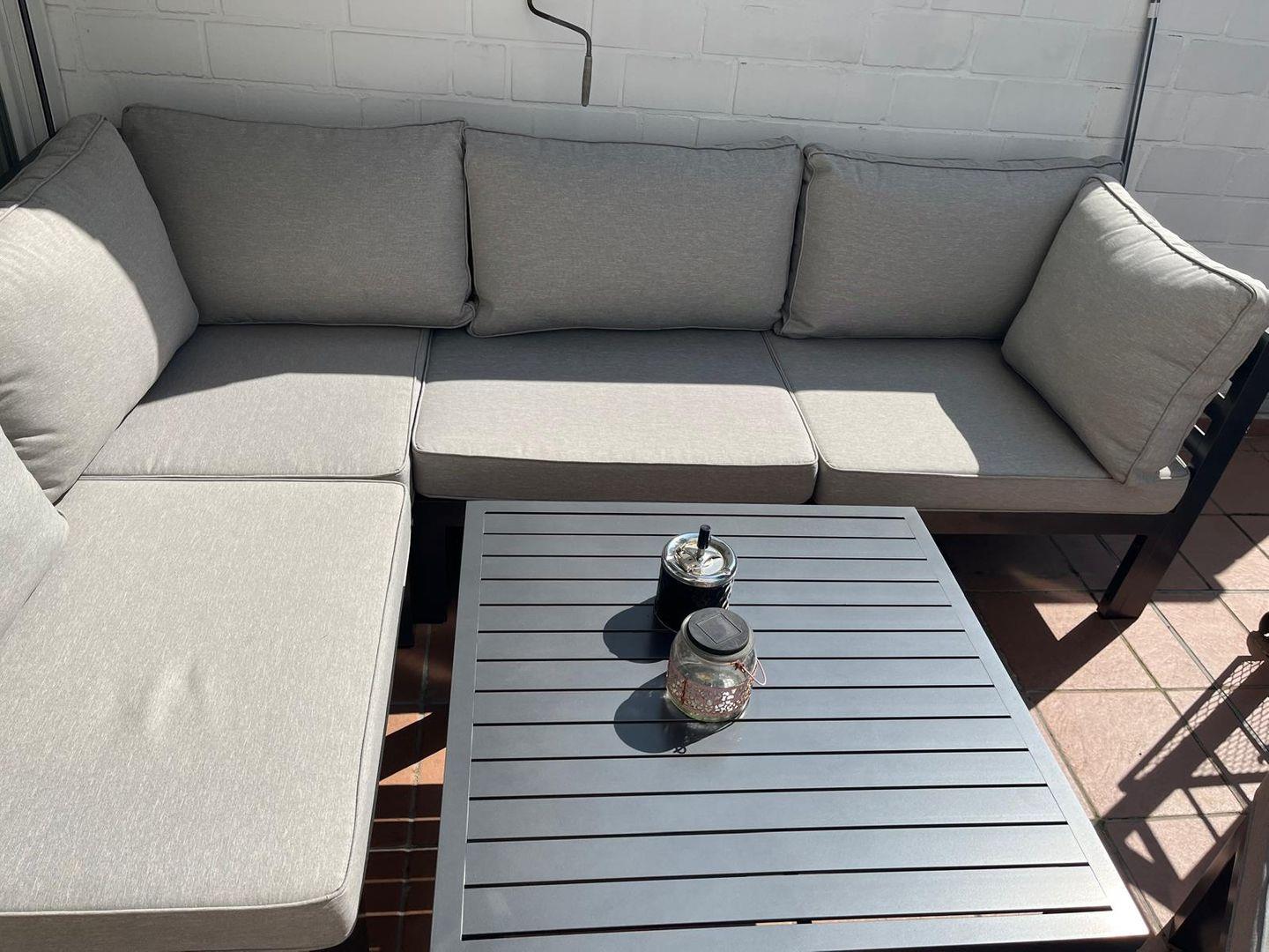 Der Balkon ist mit einer Sonnenmarkise und komfortablen Lounge Möbeln versehen. Eine kleine Treppe führt direkt zum Garten mit kleinem Rasenteil. Ihr Auto parken Sie bequem auf dem zur Wohnung gehörenden Stellplatz unter dem Parkdeck (für Klein- und Mittelklassewagen! Nr. 101 neben einem Pfeiler). Weitere Parkplätze in der Nähe sind kostenpflichtig.