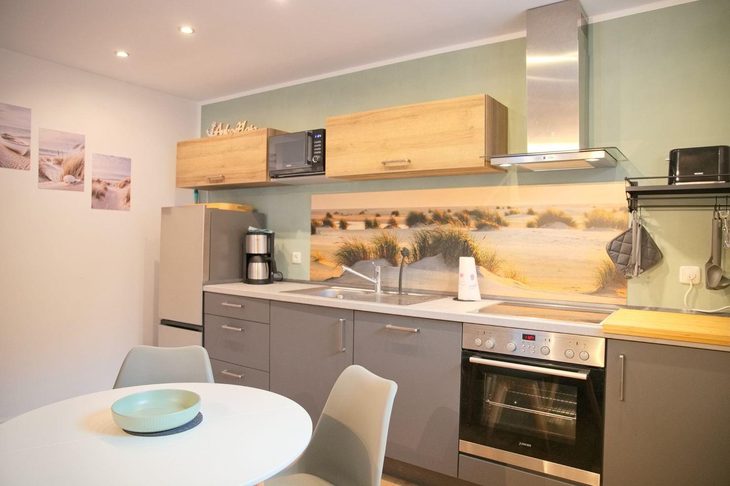 gemeinsamen Mahlzeiten ein. Die offene Einbauküche ist voll ausgestattet mit