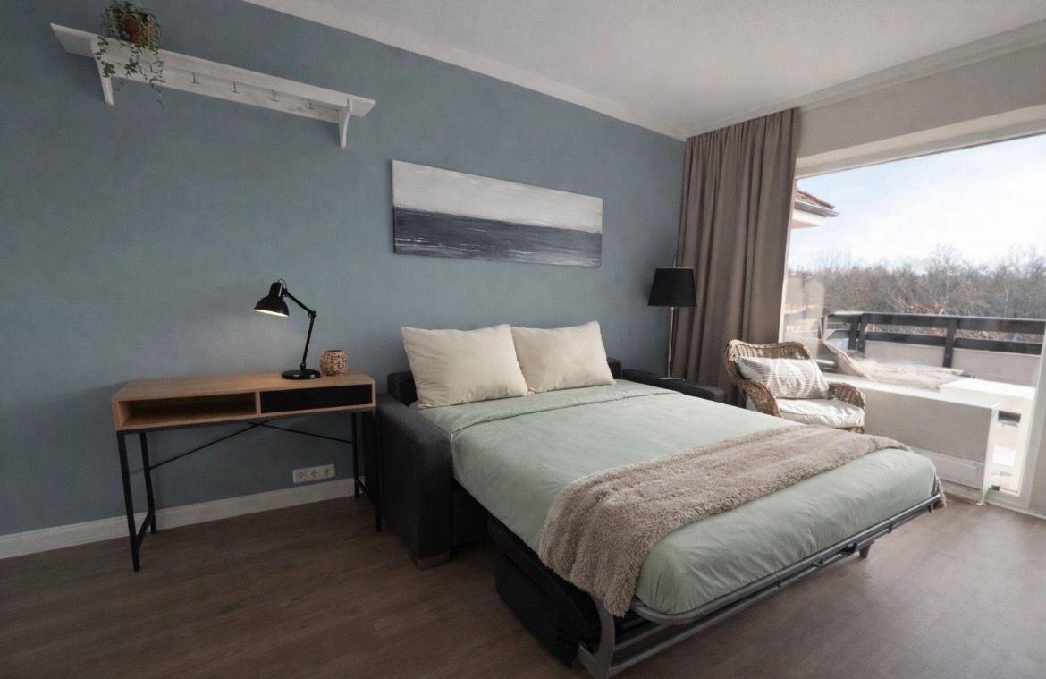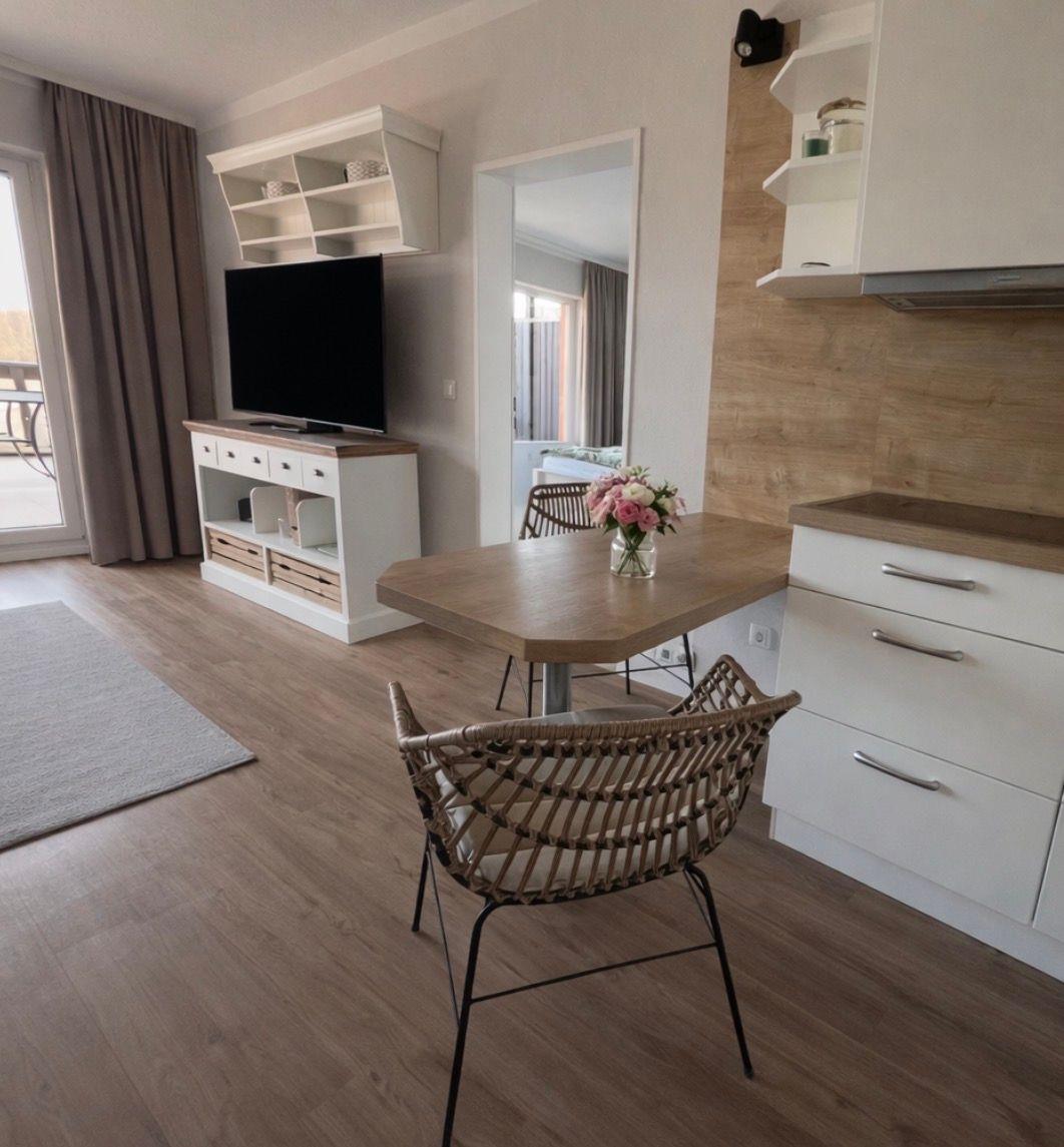 Das hell eingerichtete Wohnzimmer bietet ausreichend Platz für 4 Personen. Ein hochwertiges Schlafsofa (140 x 200)lässt Sie wie im eigenen Bett schlafen.