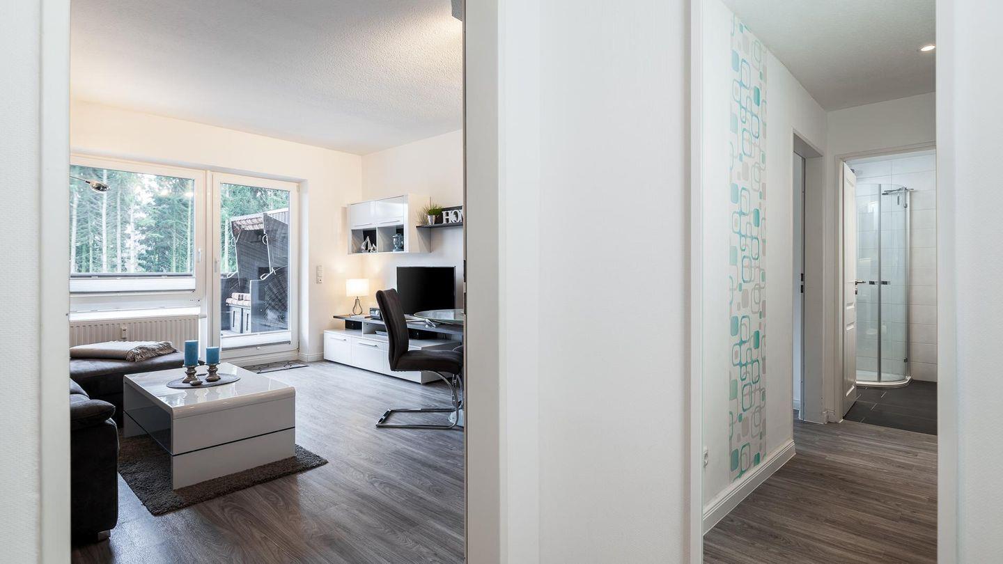 Die gesamte Wohnung ist mit hochwertigem Vinyl-Laminat in Holzoptik ausgelegt.