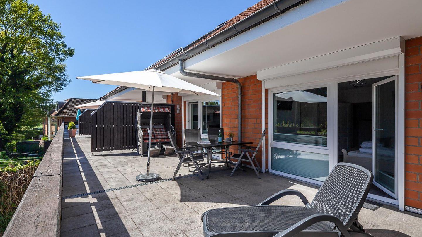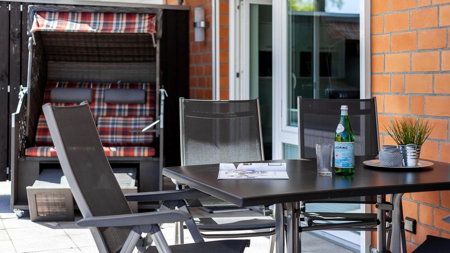 Moderne Ferienwohnung in Grömitz mit Terrasse, Sauna und Golfplatznähe für entspannte Urlaubstage.