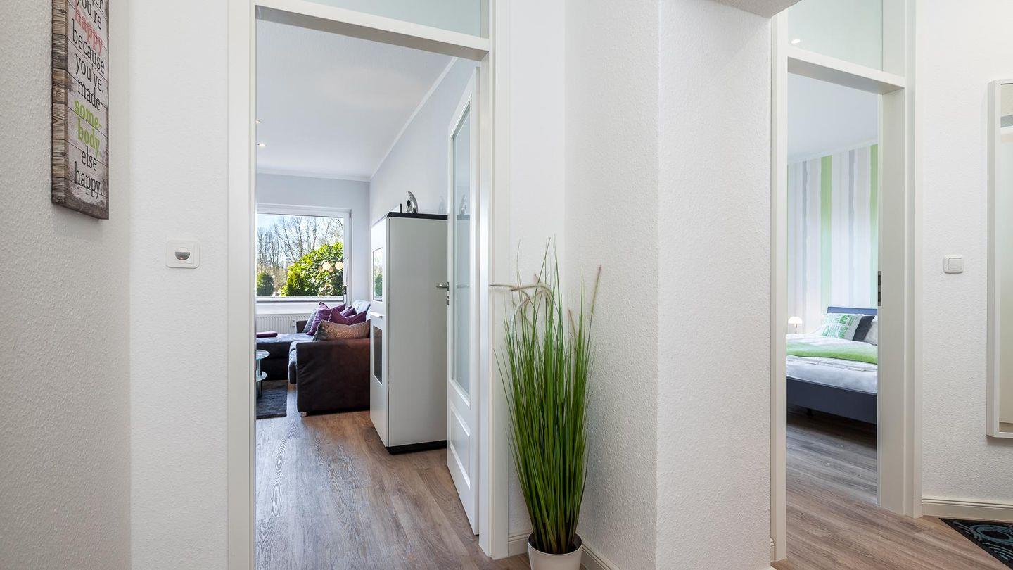 Die gesamte Wohnung ist mit hochwertigem Vinyl-Laminat in Holzoptik ausgelegt.