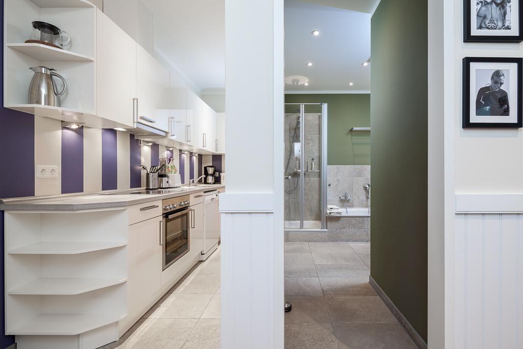 Für größere Gruppen oder Familien ist die Wohnung mit der Wohnung B0.02 durch eine Verbindungstür kombinierbar.