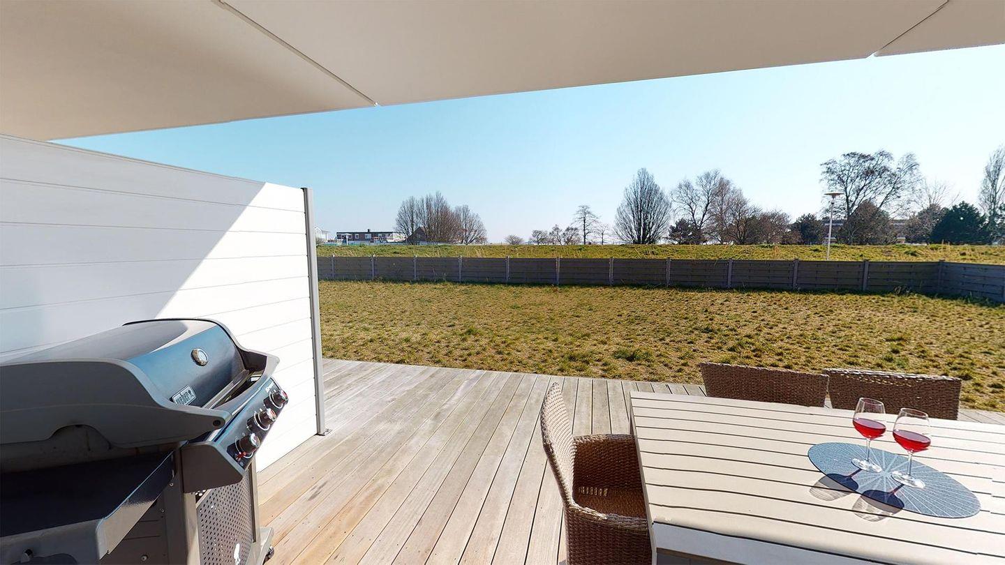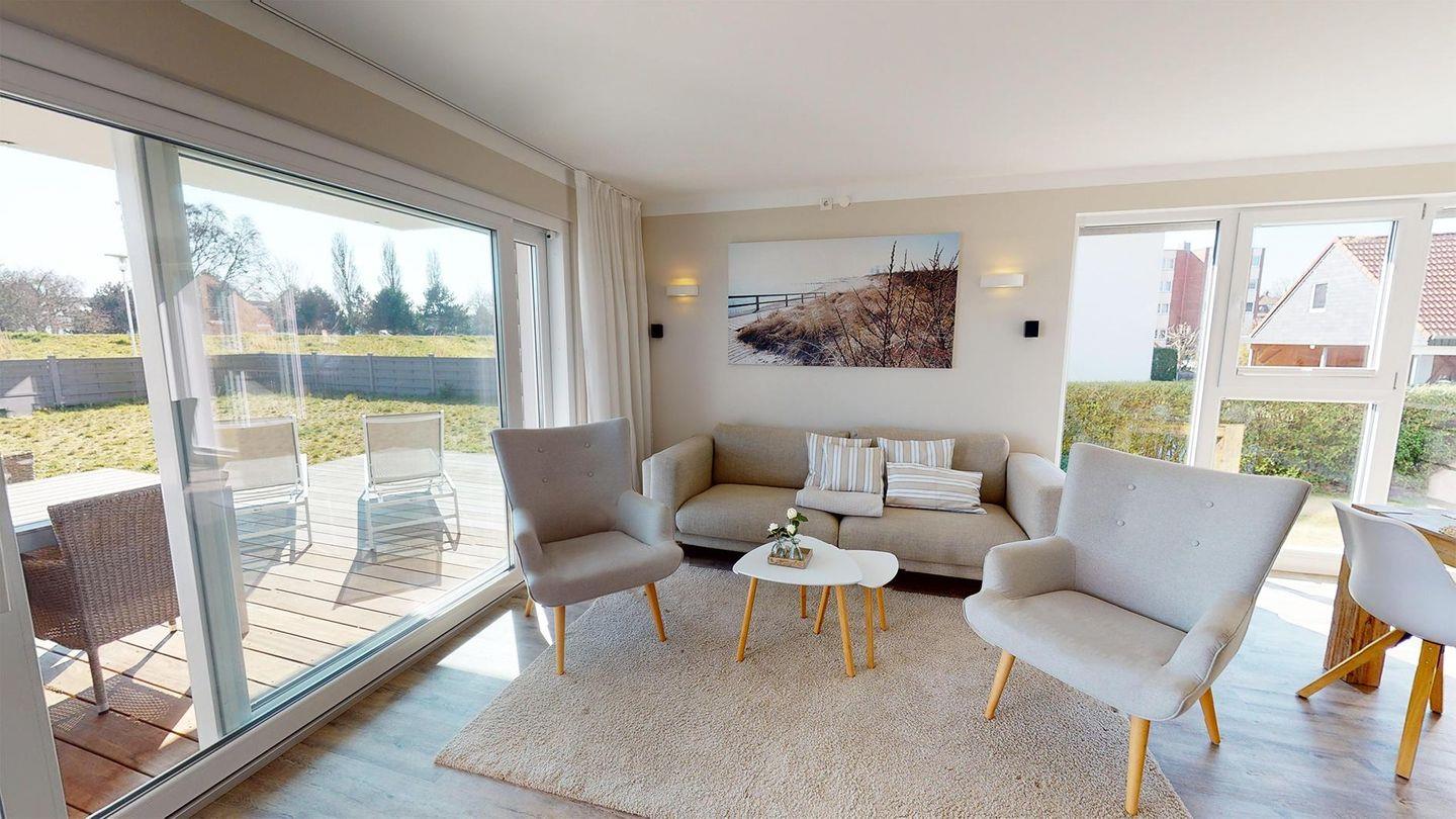 Diese schöne, helle Ferienwohnung in toller Strandlage für 4 Personen bietet auf 90 m² zwei Schlafzimmer, zwei Bäder, ein Wohn-/Esszimmer mit offener Küche sowie eine große Terrasse. Ihr Auto hat einen Stellplatz direkt am Haus.