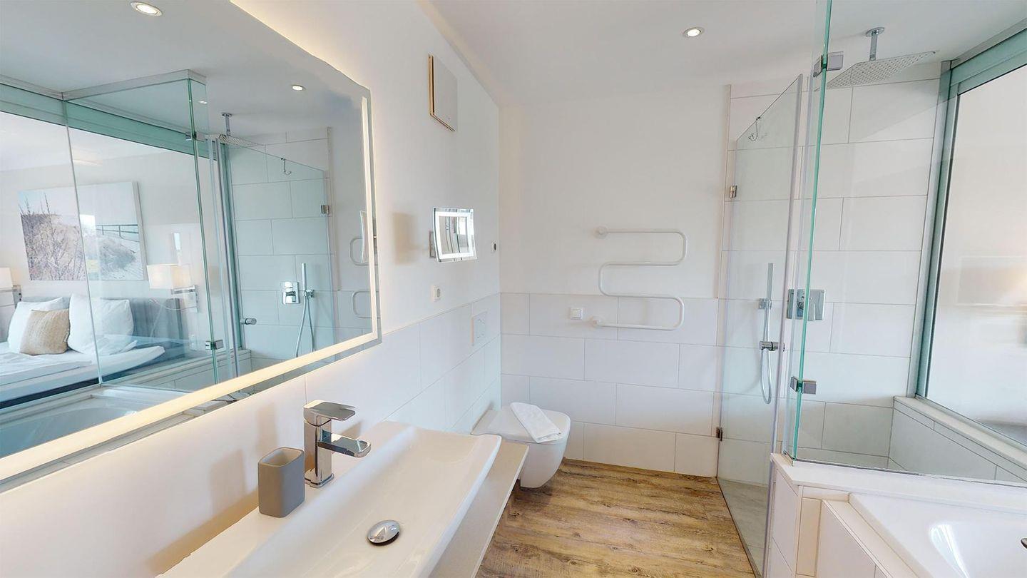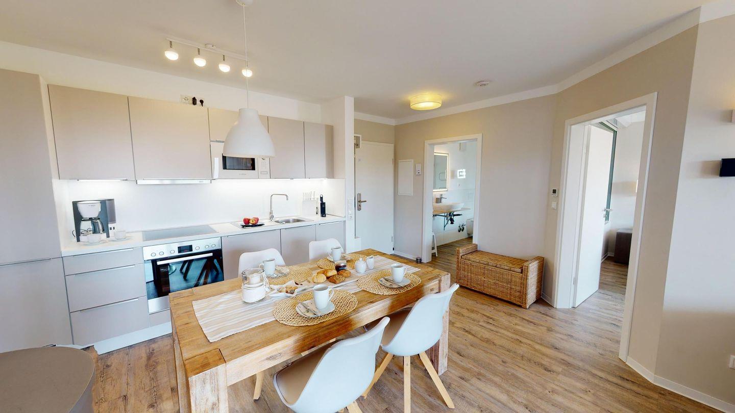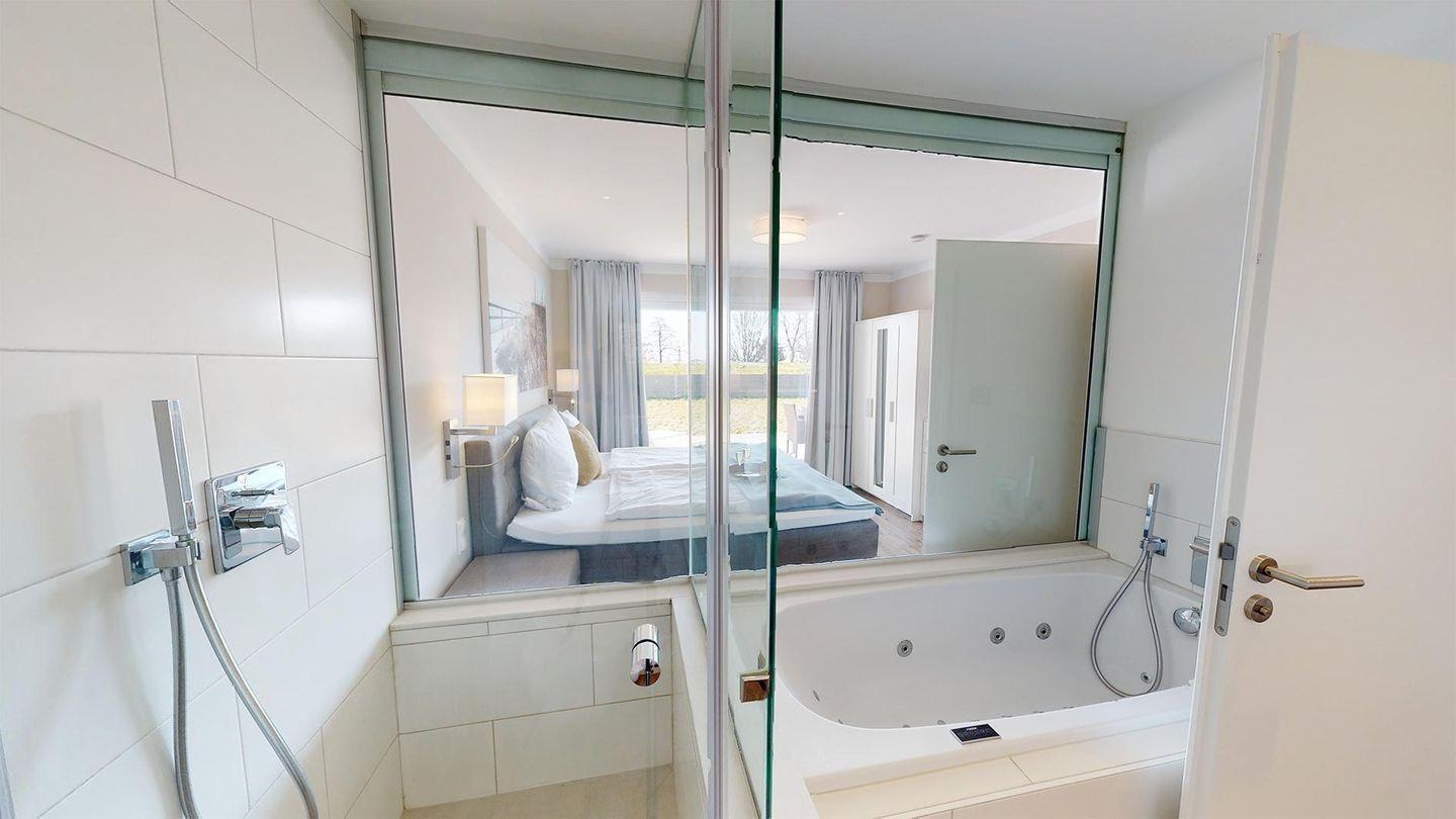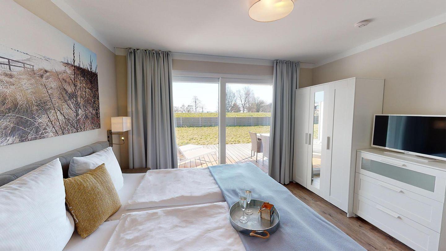 Im Erdgeschoss des Ferienobjekts Beach'n'Sea gelegen. Voll ausgestattete Küche, Ess- und gemütlicher Sofabereich mit Kaminofen. Schönes Schlafzimmer mit hochwertigem Boxspringbett, Verdunklungsplissees und Flachbildfernseher. Wellness-Badezimmer mit großer Dusche und Whirlwanne, beleuchtetem Wand- und Kosmetikspiegel, Wandradio mit Bluetooth-Verbindung und Fön. Große Terrasse mit modernem Gas-Grill (Gasflaschen werden von uns gestellt) und Terrassenmöbeln.