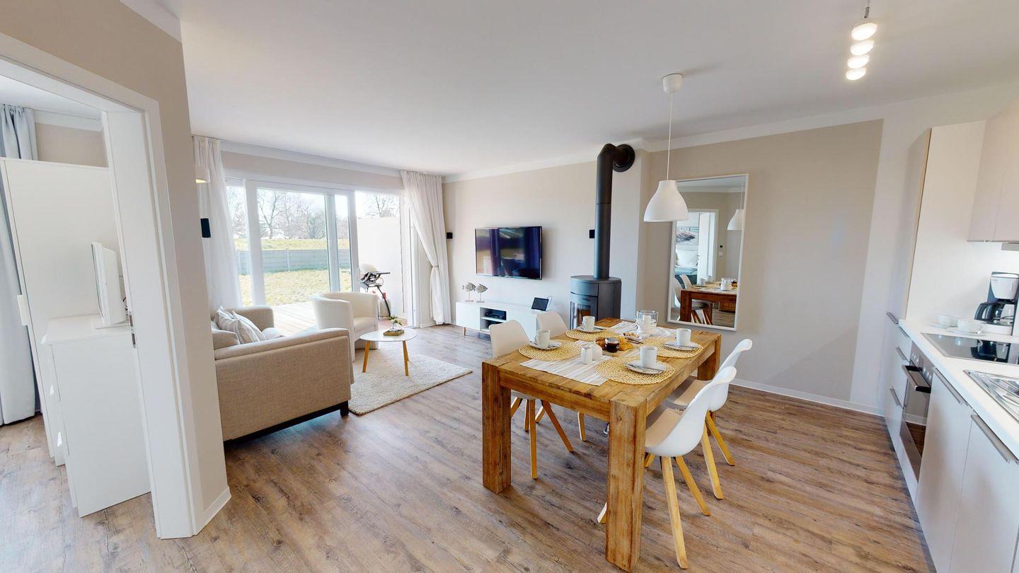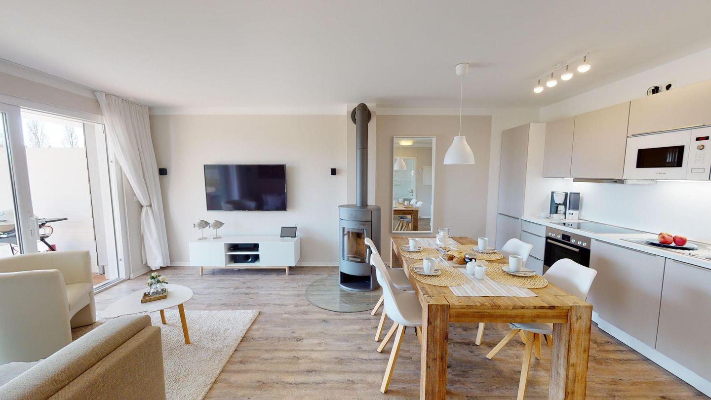 Moderne, helle Ferienwohnung mit Kamin, Terrasse und Sauna in Grömitz, nur 100 m vom Strand entfernt.