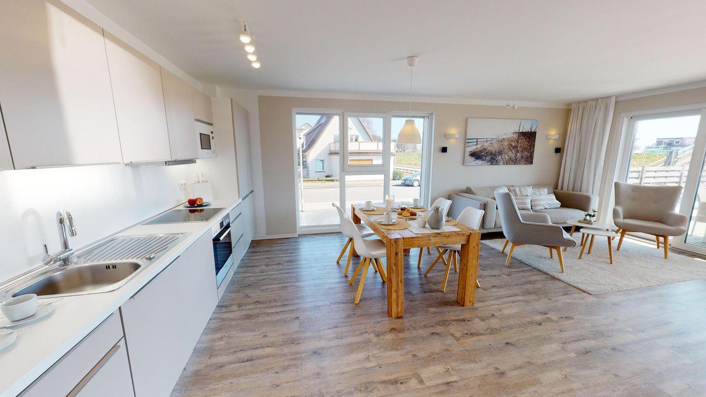 Modernes, strandnahes 90 m² Ferienapartment mit großer Terrasse und Kamin für erholsame Tage in Grömitz.