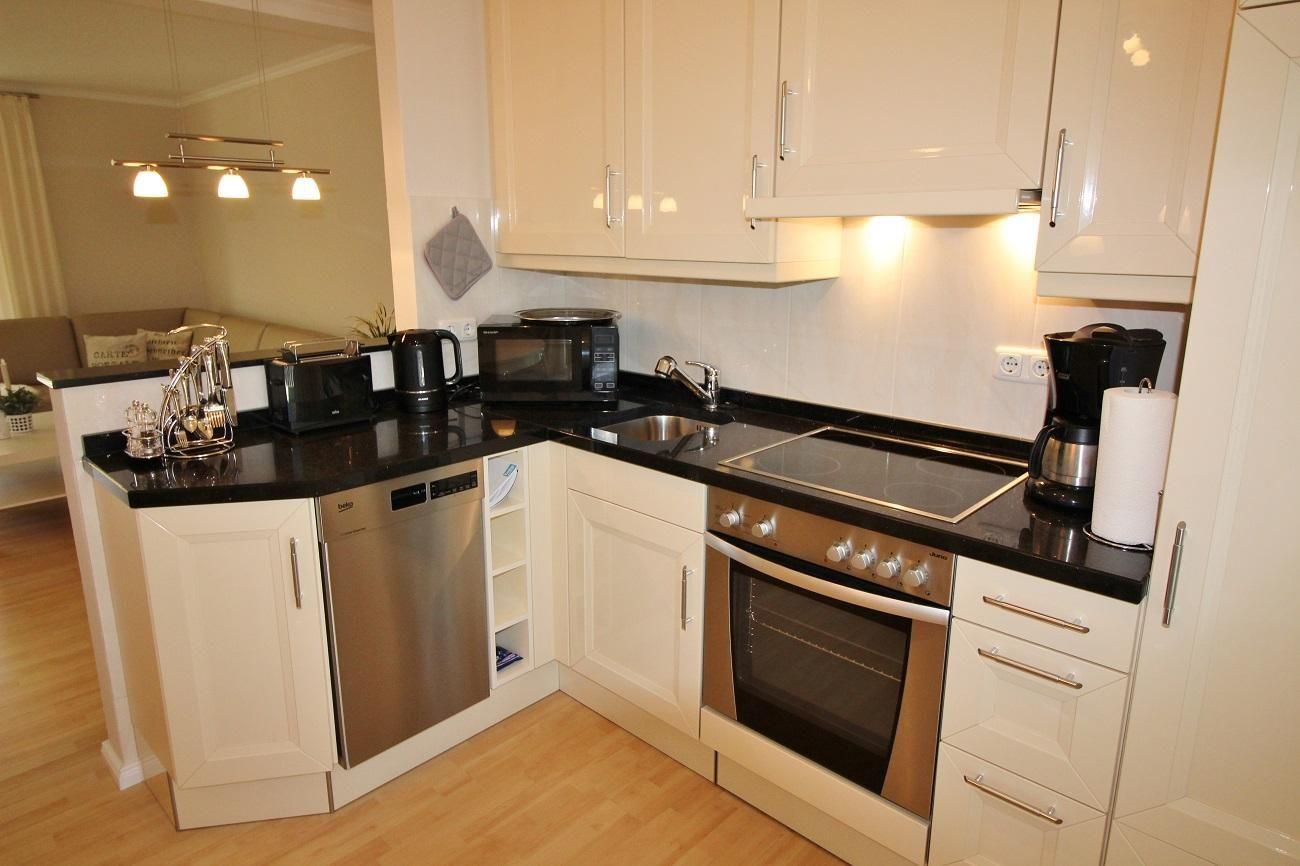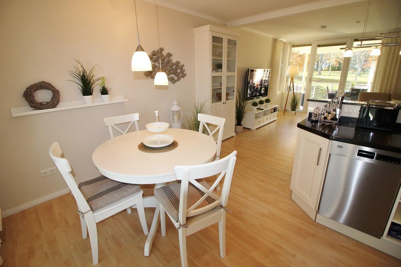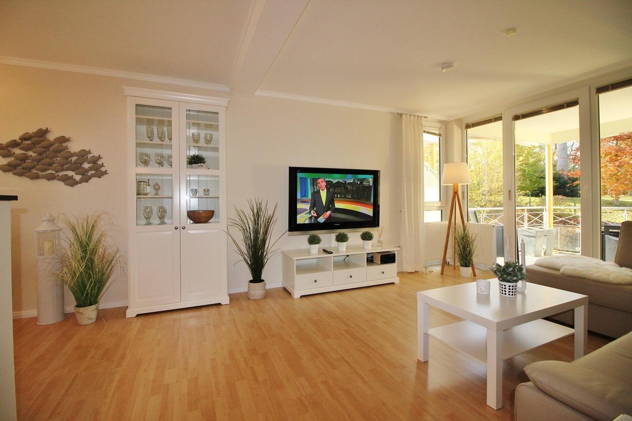 Das liebevoll im Landhausstil eingerichtete 2-Zimmer Appartement bietet Ihnen auf 54 m² Platz für 3 Personen plus Baby/Kleinkind bzw. 2 Erwachsene und 2 Kinder. Es besteht aus einem großzügigen Wohn-Essbereich, Schlafzimmer mit großem Kleiderschrank, Duschbad mit Fußbodenheizung, Flur und einer voll ausgestatteten Nolte-Küche. Auf dem hochwertigen Ledersofa können zwei Erwachsene sehr bequem liegen und entspannen. Die integrierte Schlaffunktion (1,50 m Breite) mit stabilem Lattenrost lässt sich leicht und schnell öffnen und das Bettzeug direkt unter der aufklappbaren Ottomane verstauen. Vom Balkon in Süd-/West-Lage haben Sie einen traumhaften Panorama-Blick direkt in den Kurpark - zu jeder Jahreszeit eine Augenweide! Sie können die Wohnung in der 1. Etage auch bequem mit dem Fahrstuhl erreichen.