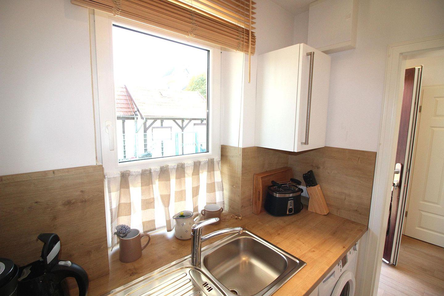Dieses Appartement liegt im Erdgeschoss (3 Stufen im Eingangsbereich) und ist ca. 50 m² groß.