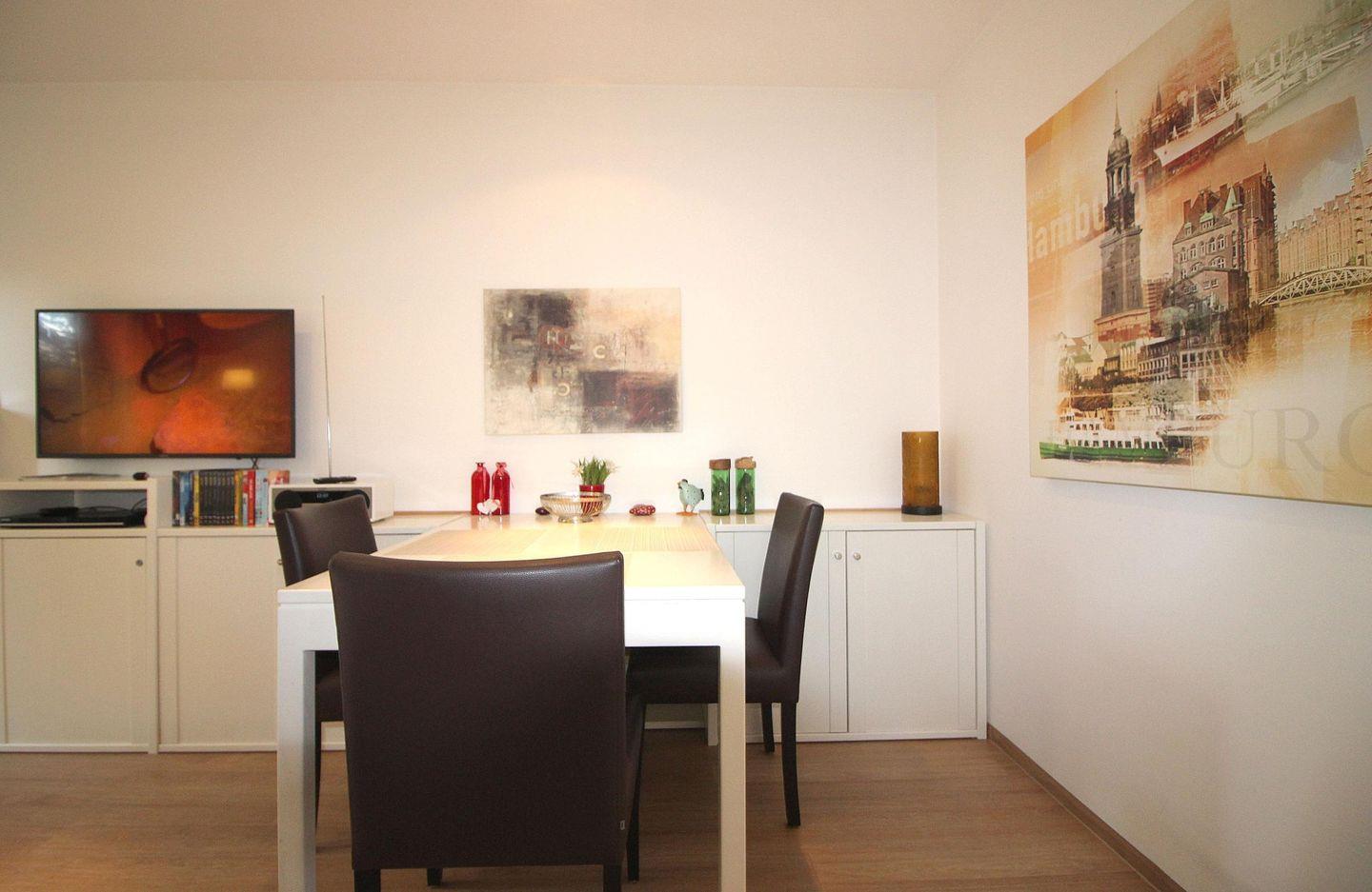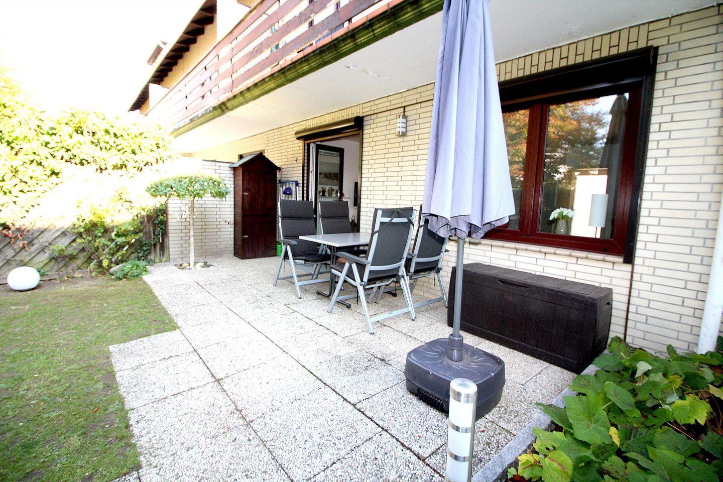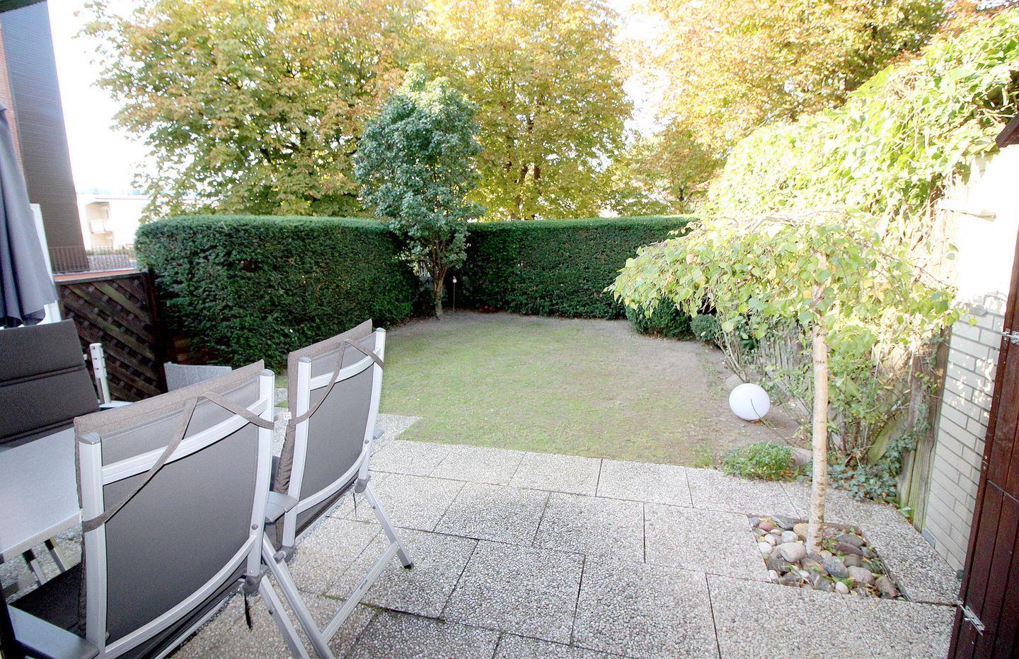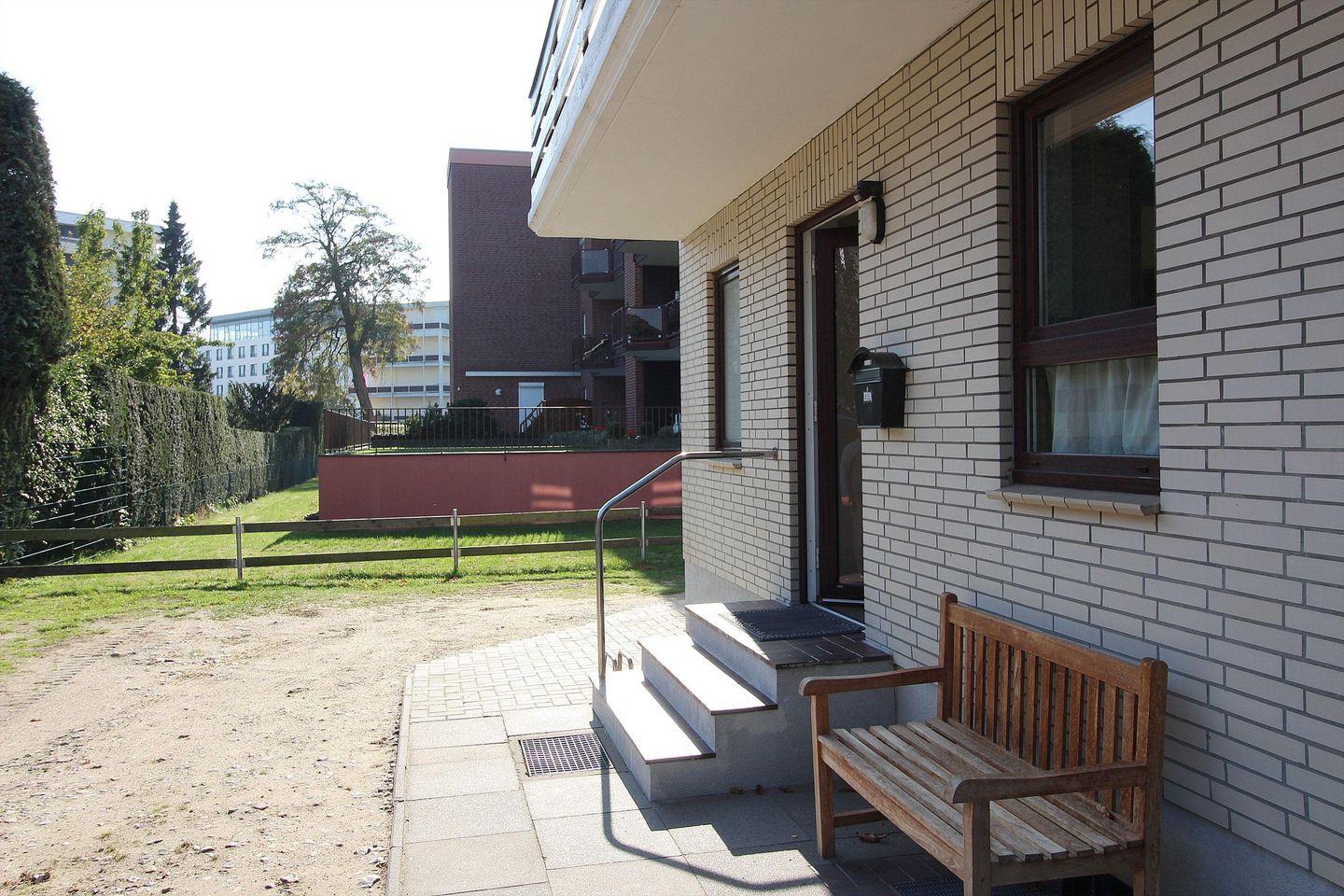 Die Wohnung verfügt außerdem über einen kleinen Garten (eingezäunt/Hecke) mit eigenem Zugang.