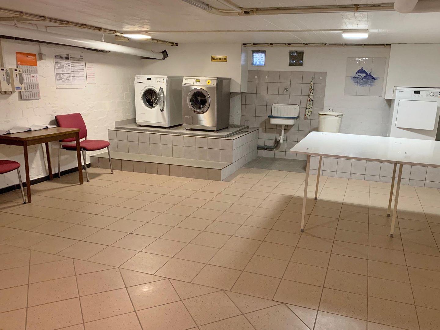 Waschmaschinen und Trockner sind auf Münzbasis zur allgemeinen Nutzung im Keller vorhanden.
