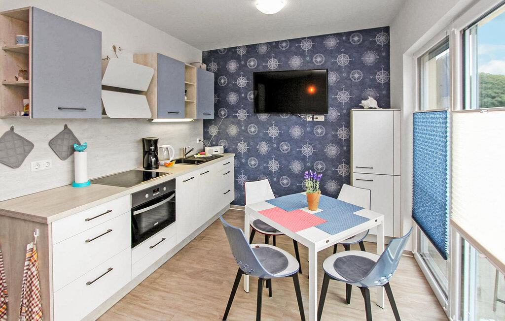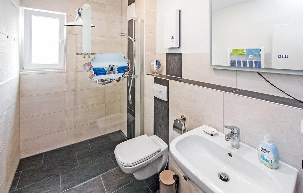 Die 43 qm große Zweiraum-Ferienwohnung für max. 4 Personen befindet sich separat im Obergeschoss eines Ferienhauses (4-WE) innerhalb einer Ferienanlage im Küstenwald vom Ostseebad Graal-Müritz. Der Ostseestrand ist nur etwa 1,8 km entfernt. Das Ferienhaus wurde im Jahr 2018 neu erbaut und die Wohnung komfortabel ausgestattet. Der Zugang erfolgt über eine separate Außentreppe. Vorhanden sind ein Wohnraum (Polstermöbel mit Schlaffunktion, Flachbild-TV, Radio), eine offene Küchenzeile (Essecke, E-Herd mit Backofen und Mikrowellenfunktion, Kühlschrank mit Tiefkühlteil, Spülmaschine, div. Küchengeräte), ein Schlafraum (Doppelbett) sowie ein Bad mit DU/WC.