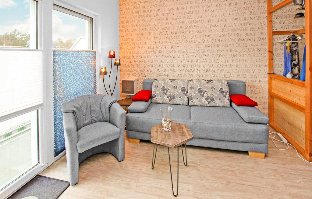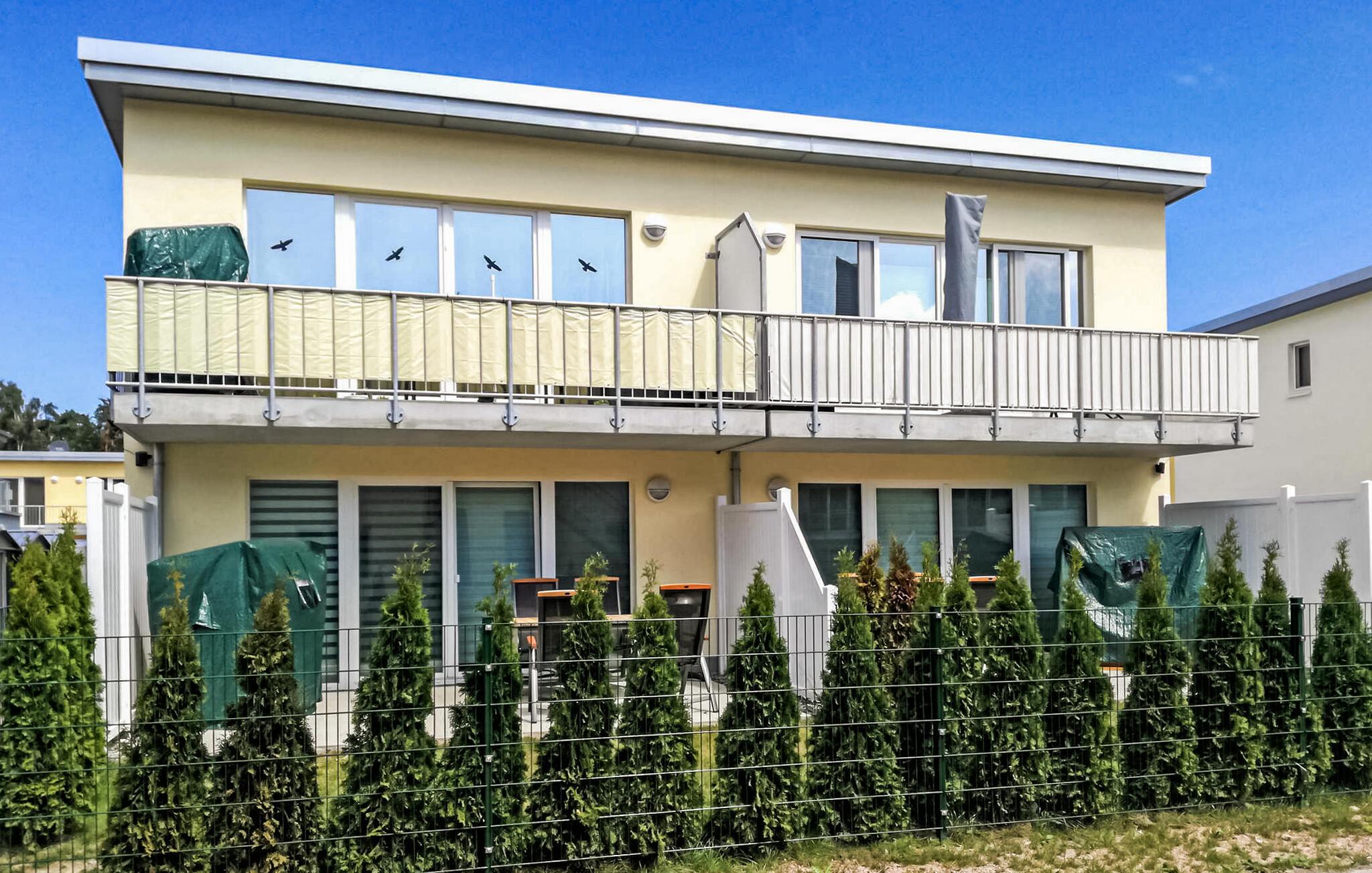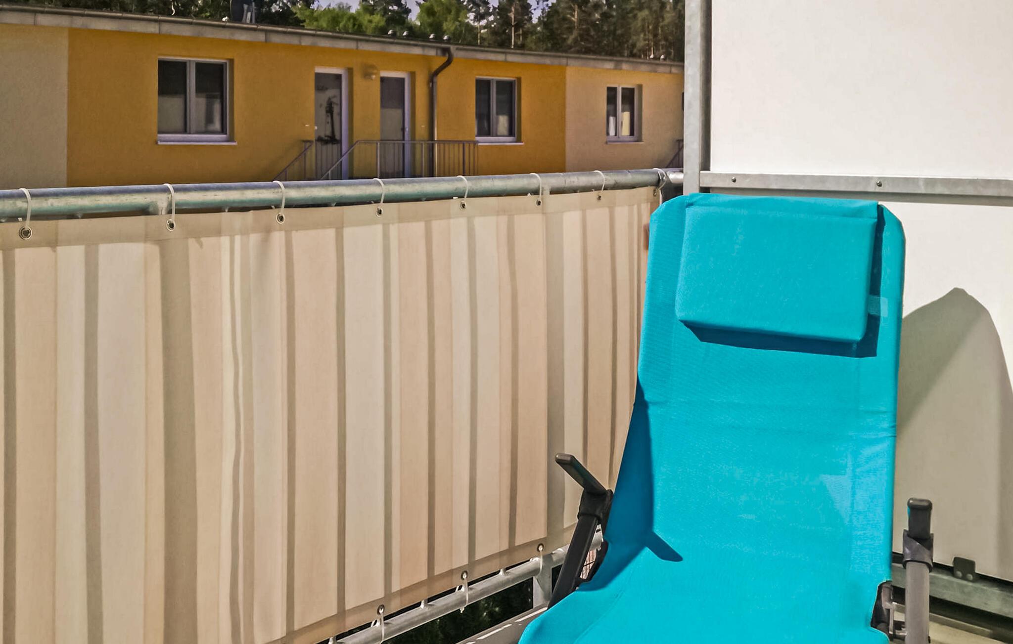 Moderne Zweiraum-Ferienwohnung mit Balkon nahe Ostseestrand in Graal-Müritz, ideal für entspannte Tage im Küstenwald.