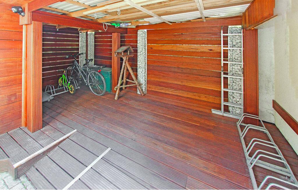Die Wohnung besitzt weiterhin ein Balkon mit Sitzmöbeln und Sonnenliege. Im Außenbereich steht eine Unterstellmöglichkeit für geliehene oder mitgebrachte Fahrräder zur Verfügung. Auf dem Grundstück gibt es einen Parkplatz. Vor dem Haus befinden sich aber weitere öffentliche Parkflächen (kostenfrei).