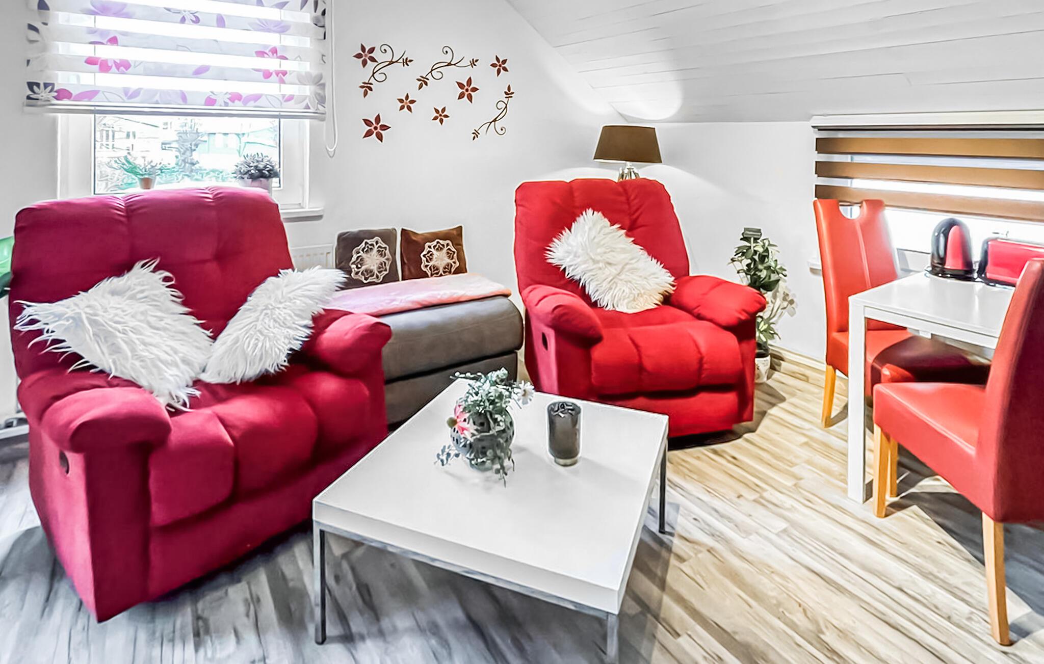 Eines von zwei 45 qm großen Zweiraum-Ferienwohnungen für 2 Personen befinden sich im Obergeschoss eines Wohnhauses auf dem 500 qm großen und gepflegten Wohngrundstück des Eigentümers in zentraler Lage nur ca. 800 m vom Ostseestrand entfernt. Der Zugang erfolgt über eine steile Treppe im separaten Eingangsbereich.
