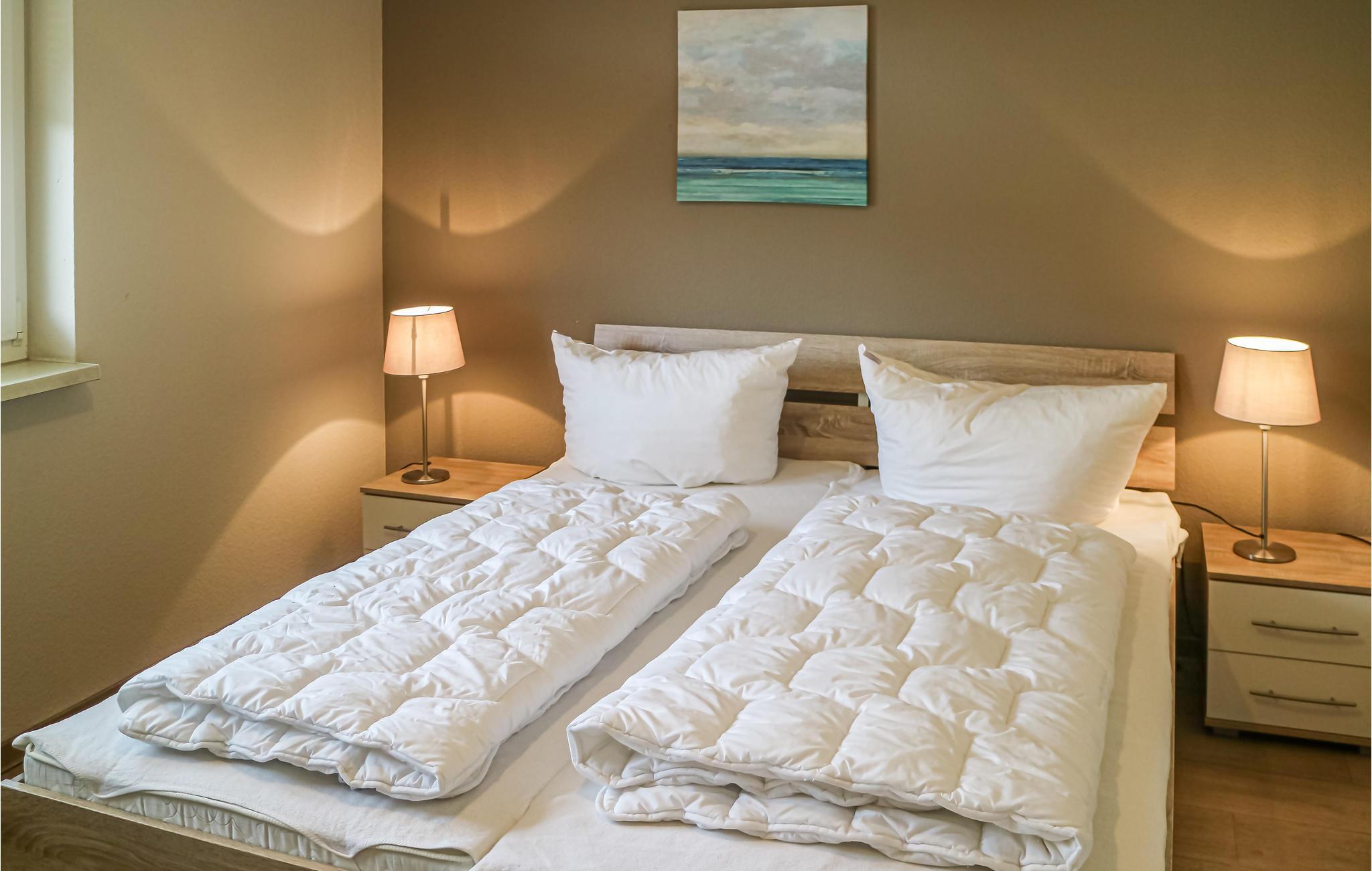 Die helle Ferienwohnung befindet sich im ruhigen 1. Obergeschoss. Es gibt zwei separate Schlafzimmer, Verdunklungsmöglichkeiten und Fliegengitter sind hier vorhanden. Die gesamte Wohnung ist mit hochwertigem Laminat Fußboden ausgestattet. Eine Fußbodenheizung im Badezimmer sorgt in der kühleren Jahreszeit für eine wohlig warme Wohnatmosphäre. Die attraktive Wohnung ist ein gemütlicher Rückzugsort und Ruhepol mit großem Südbalkon. Gartenmöbel sind hier vorhanden, sodass Sie den Tag mit einem Frühstück im Freien starten können.