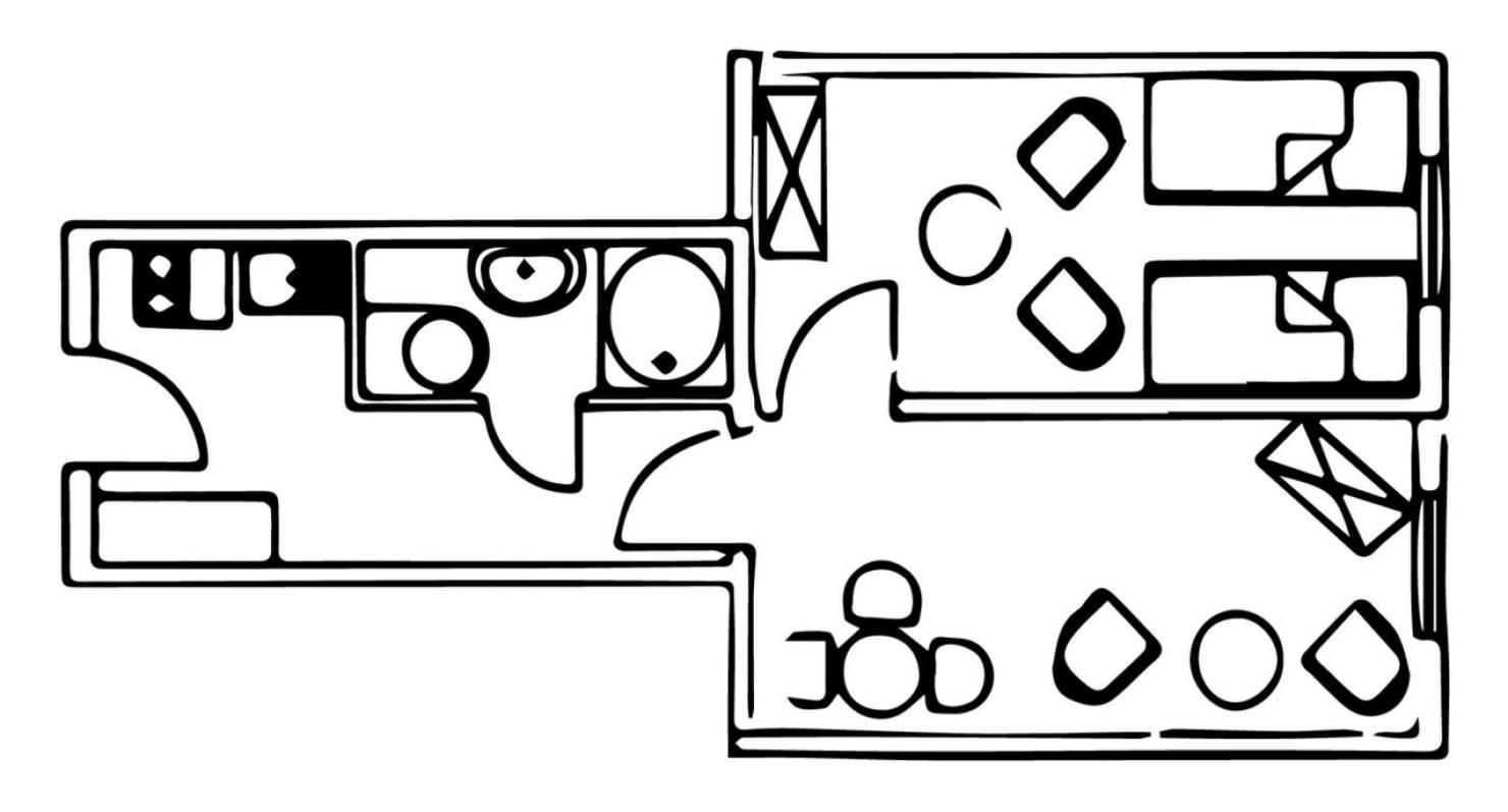Die Ferienwohnung „Strandnelke“ befindet sich im 2. Stock des Haupthauses der Villa Christiana. Auf gut 25 Quadratmetern befinden sich ein Flur mit Küchenzeile, ein kleines Badezimmer (DU/WC), ein Schlafzimmer mit zwei Betten und ein kleines Wohn-und Esszimmer.