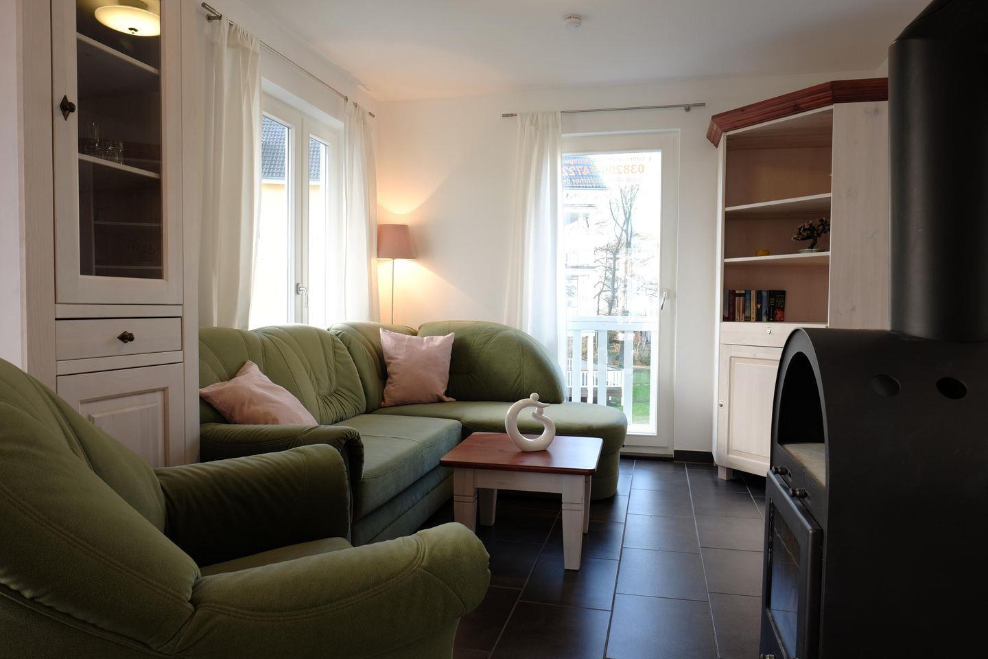 Moderne 3-Zimmer-Ferienwohnung in Graal-Müritz, strandnah mit Balkon, Kamin und kostenfreiem WLAN für erholsame Tage.