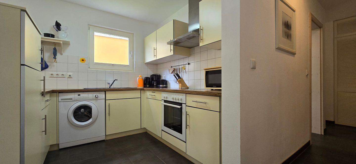 - in einer separaten Ecke im Wohnraum befindet sich eine Einbauküche inkl. Geschirrspüler, Herd, Kaffeemaschine, Toaster, Kühlschrank und Waschmaschine