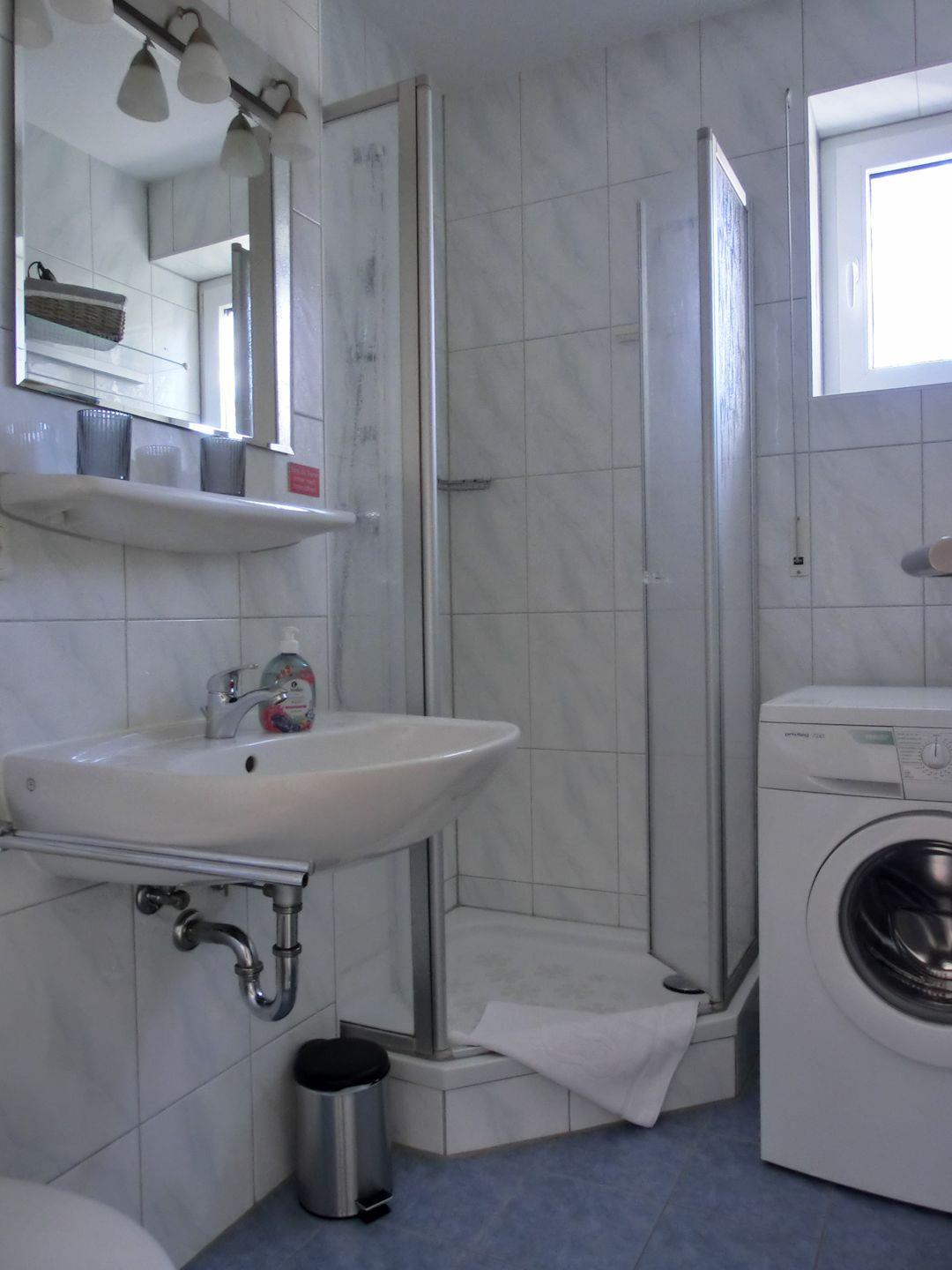 - Das Tageslichtbad bietet neben Dusche, WC und Waschtisch auch eine Waschmaschine.