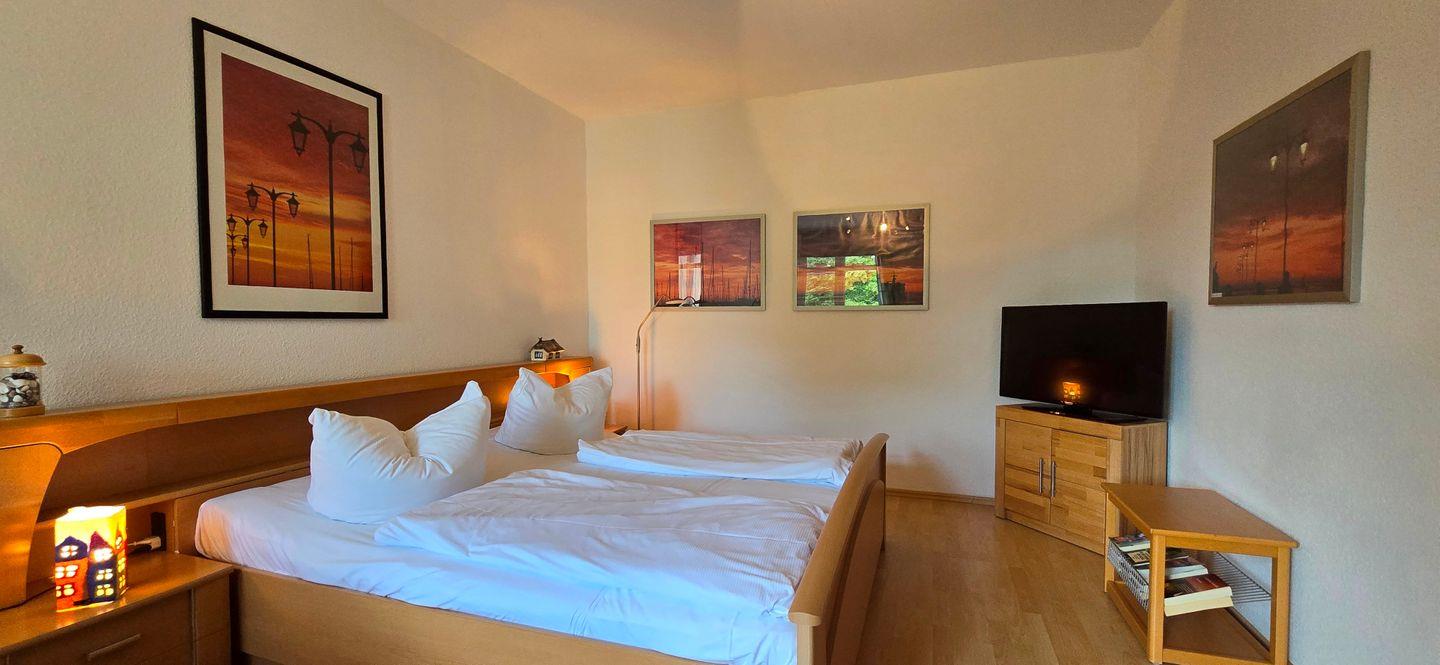 - großes separates Schlafzimmer mit Doppelbett (200 cm x 200 cm) und 2.TV-Gerät